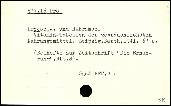 Droese,W, und H.Bramsei Vitamin-Tabellen der gebräuchlichsten Nahrungsmittel.