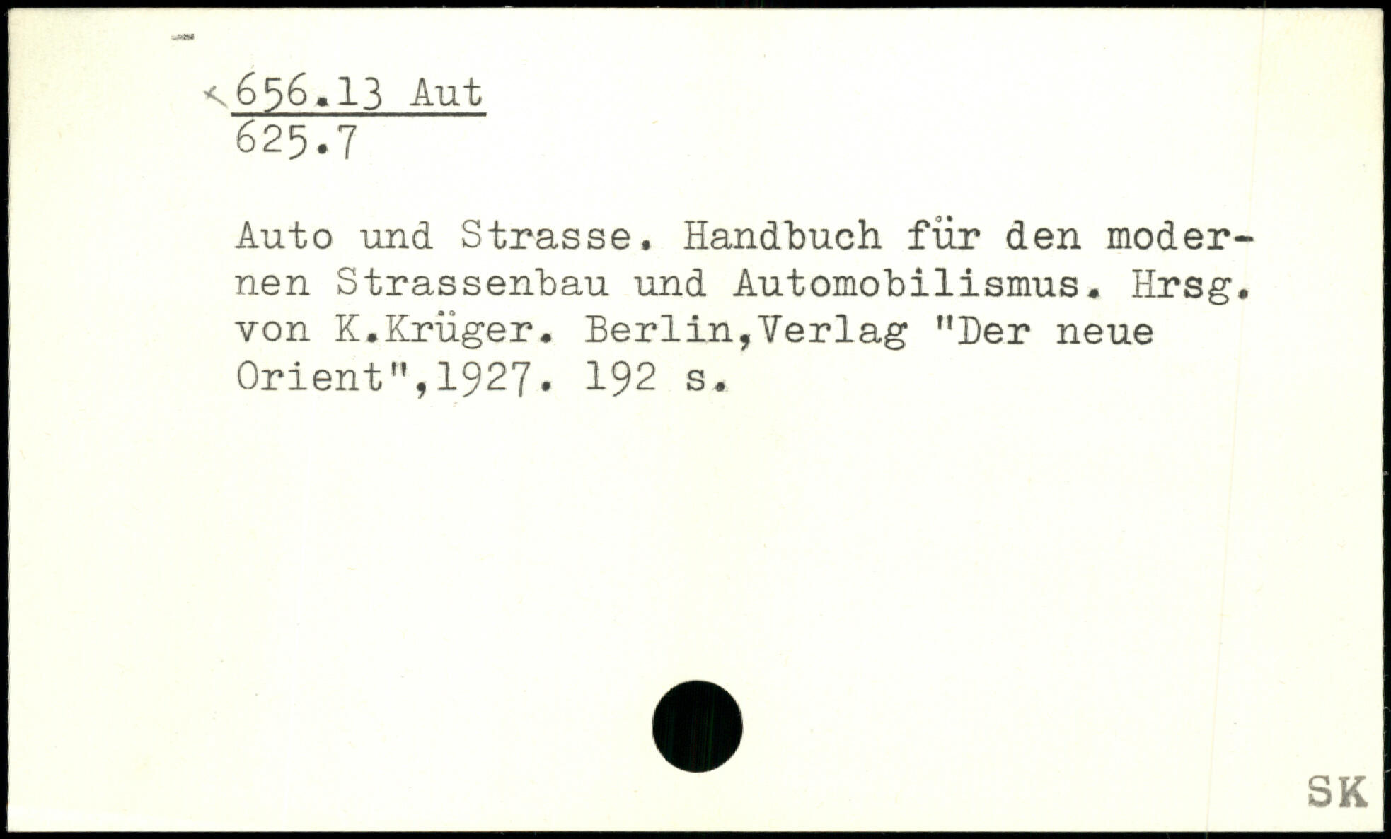 Auto und Strasse. Handbuch für den modernen Strassenbau und Automobilismus. Hrsg, von K.Krüger. Berlin,Verlag "Der neue OrientM,1927.