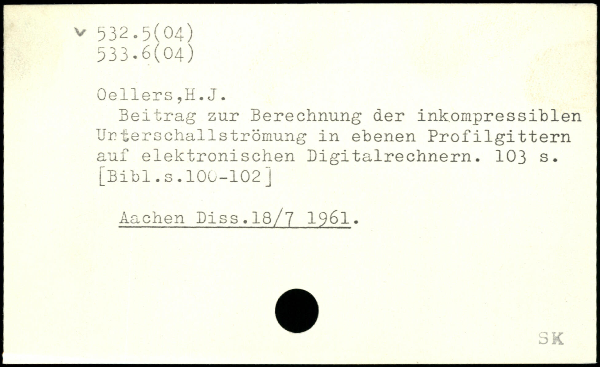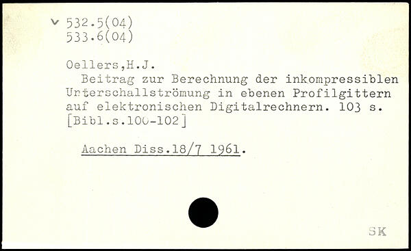 Beitrag zur Berechnung der ink.ompressiblen TJr terschallströmung in ebenen Profilgittern auf elektronischen Digitalrechnern.