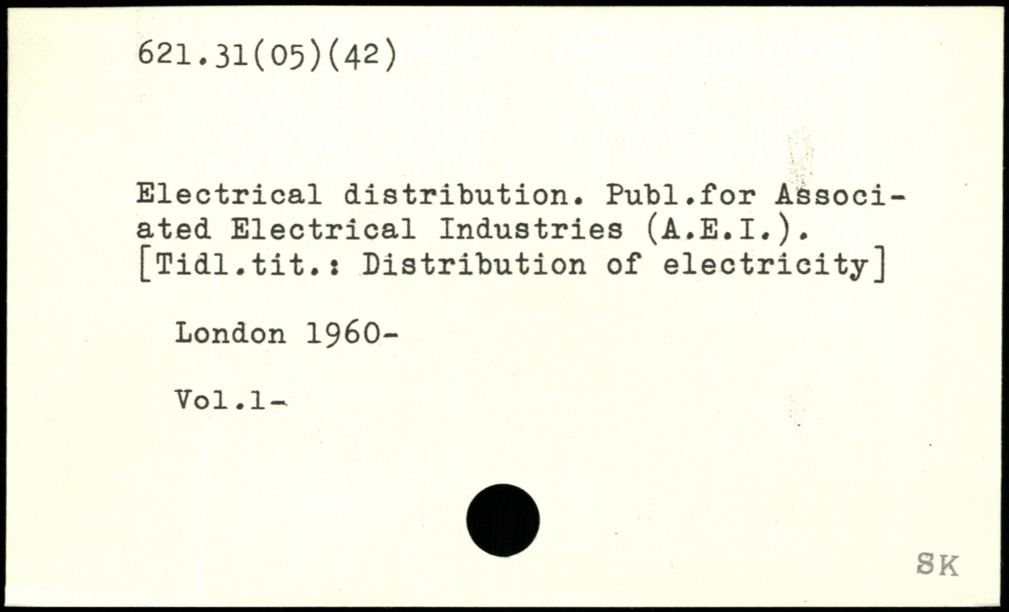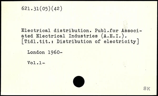 Electrical distribution. Publ.for Associated Electrical Industries (A.E.I.). [Tidl.tit.: Distribution of electricity]