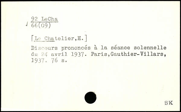 rie ChatelierfH.] Discours prononcés à la séance solennelle du 24 avril 1937- Paris,Gauthier-Villars, 3 937.