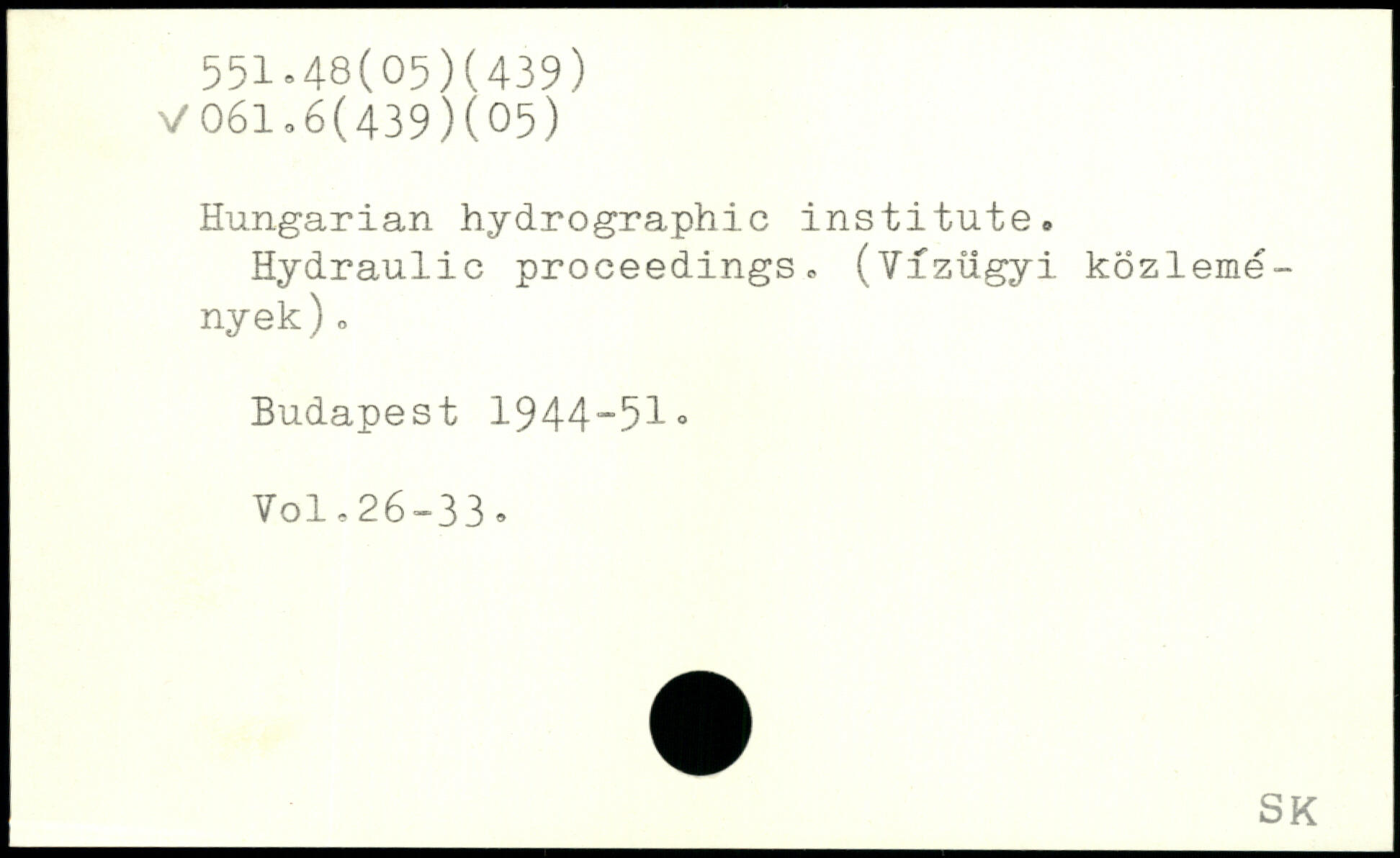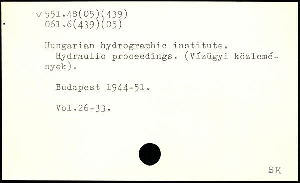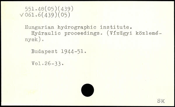 Hungarian hydrographic institute. Hydraulic proceedings. (Yfzugyi kozleme-nyek).