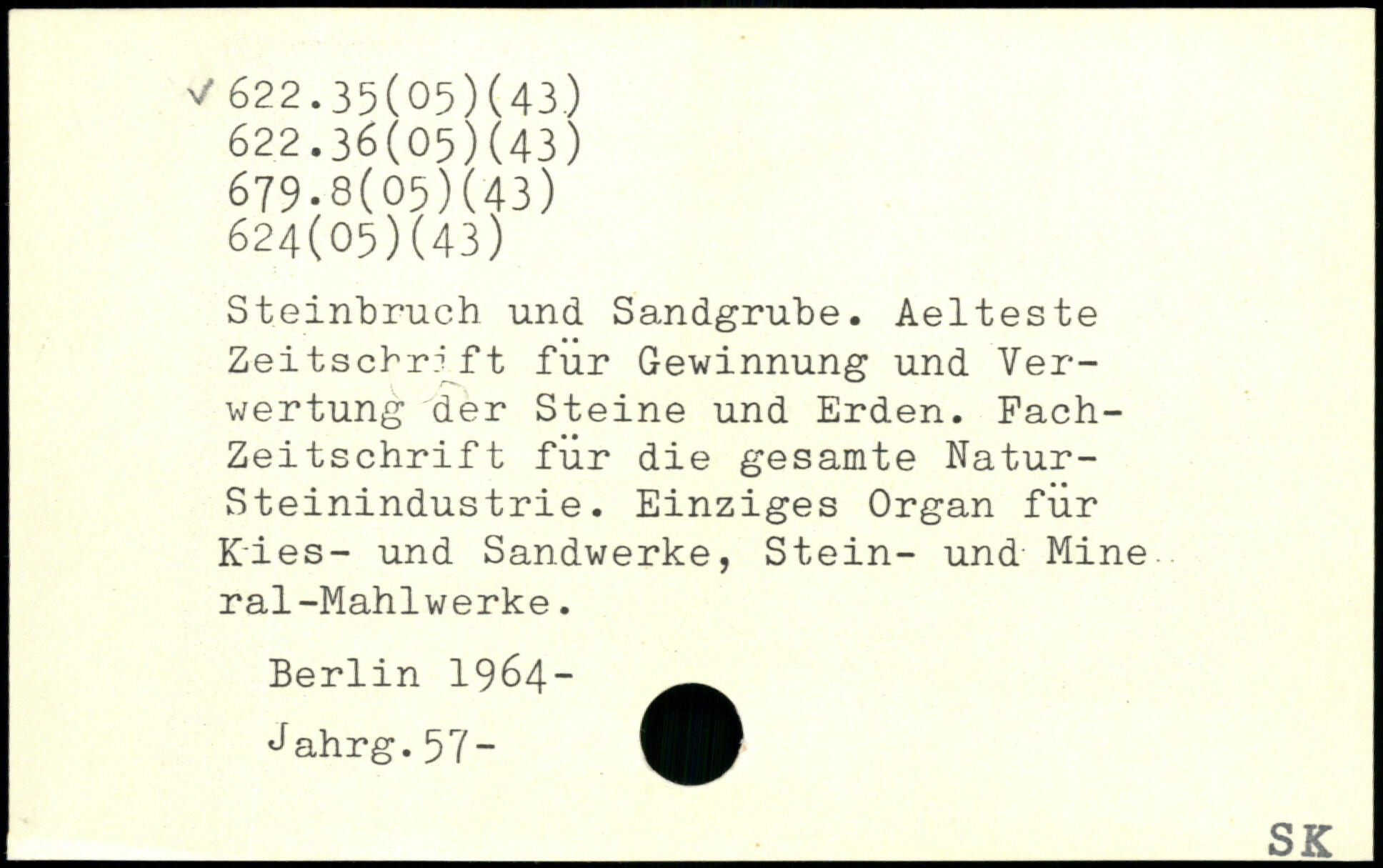 Steinbruch und Sandgrube. Aelteste Zeitschrift für Gewinnung und Verwertung der Steine und Erden. Fachzeitschrift für die gesamte Natur-Steinindustrie. Einziges Organ für Kies- und Sandwerke, Stein- und Mine, ral-Mahlwerke.