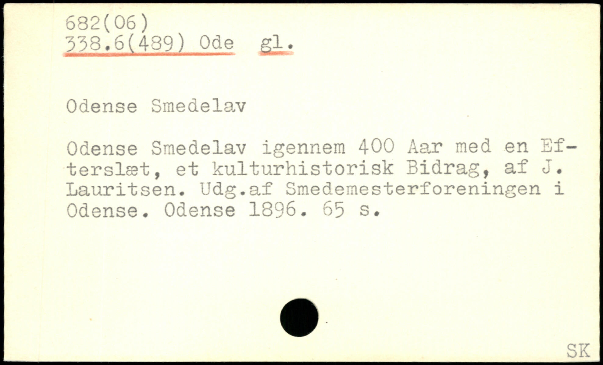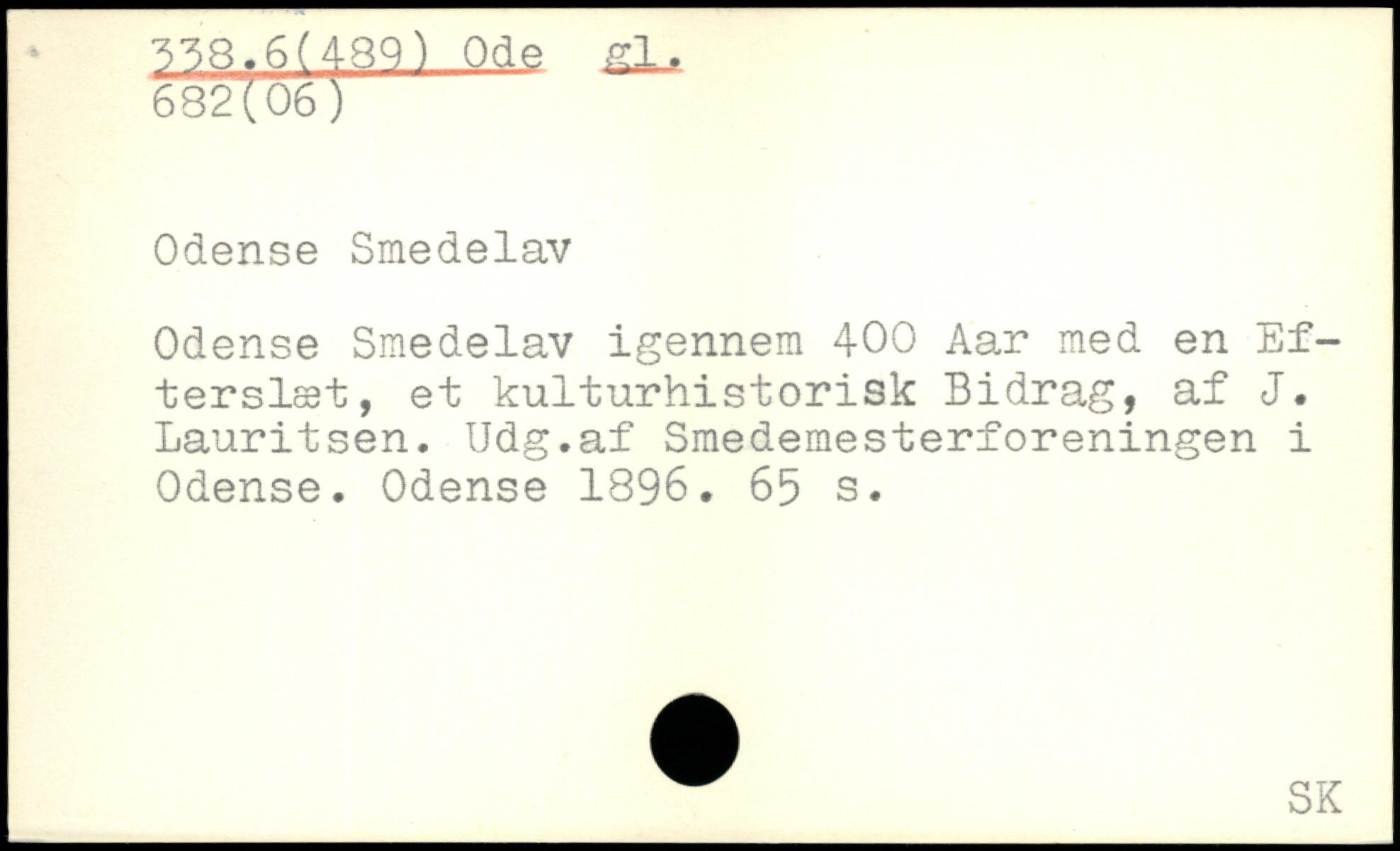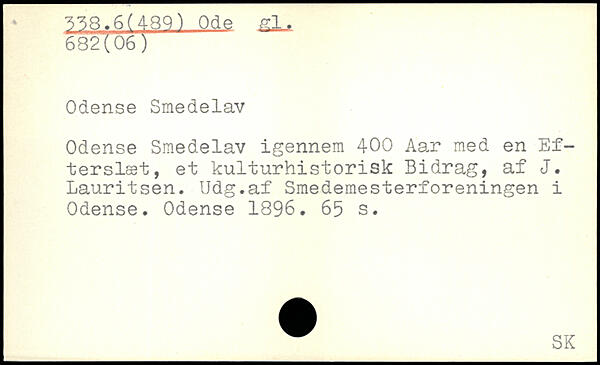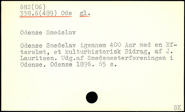 Odense Smedelav Odense Smedelav igennem 400 Aar med en Efterslæt, et kulturhistorisk Bidrag, af J. Lauritsen. Udg.af Smedemesterforeningen i Odense. Odense 1896.