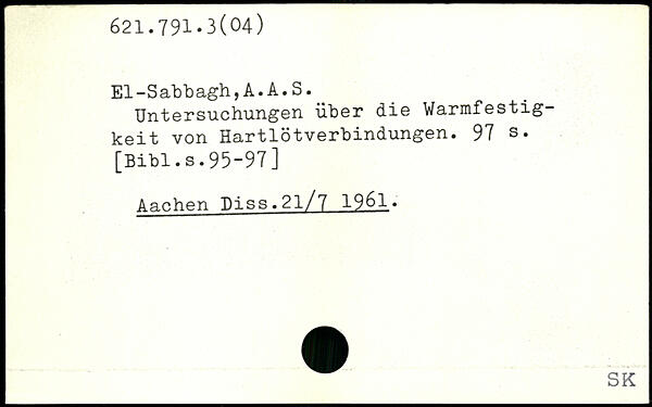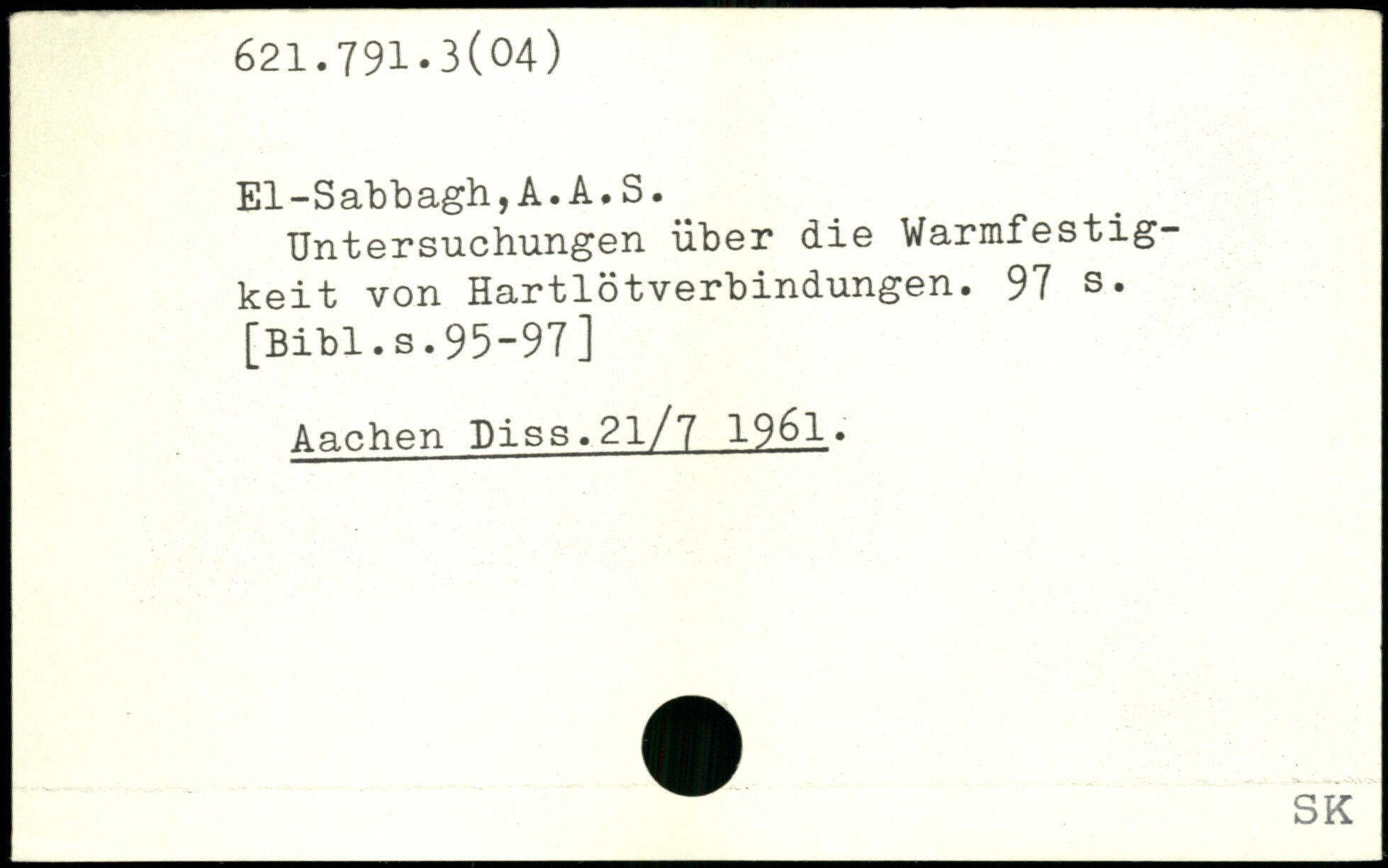 Untersuchungen über die Warmfestigkeit von Hartlötverbindungen.
