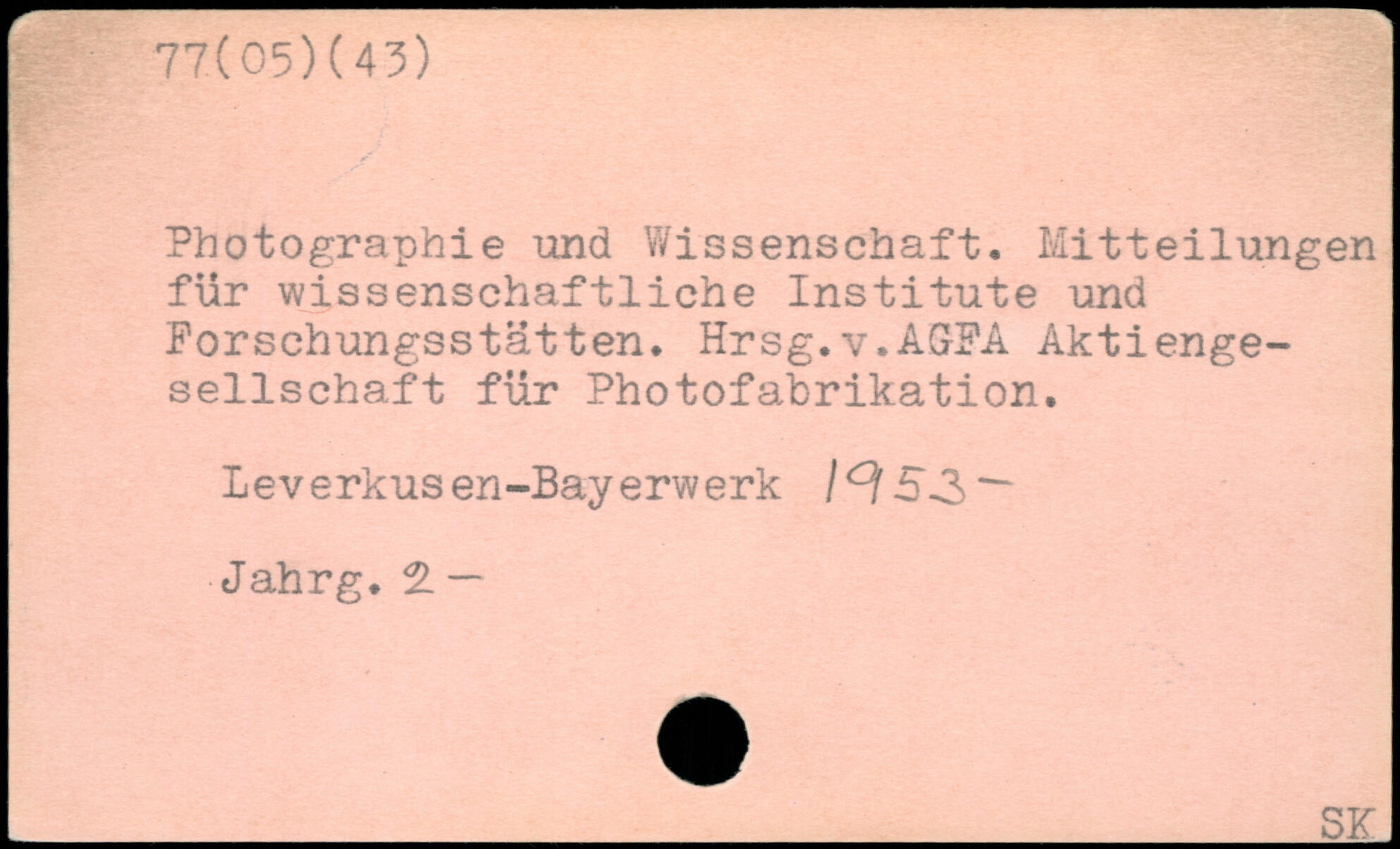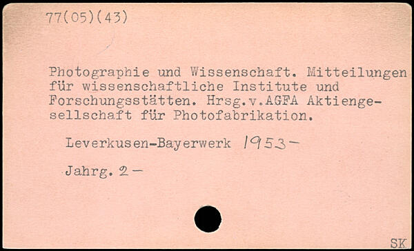 Photographie und Wissenschaft. Mitteilungen für wissenschaftliche Institute und Forschungsstätten. Hrsg.v.AGFA Aktiengesellschaft für Photofabrikation. Leverkusen-Bayerwerk Jahrg. 2. —