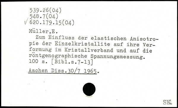 Zum Einfluss der elastischen Anisotropie der Einzelkristallite auf ihre Verformung im Kristallverband und auf die röntgenographische Spannungsmessung.