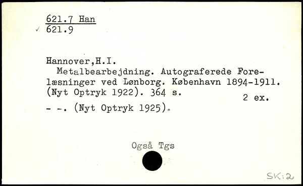 Metalbearbejdning. Autograferede Forelæsninger ved Lønborg.