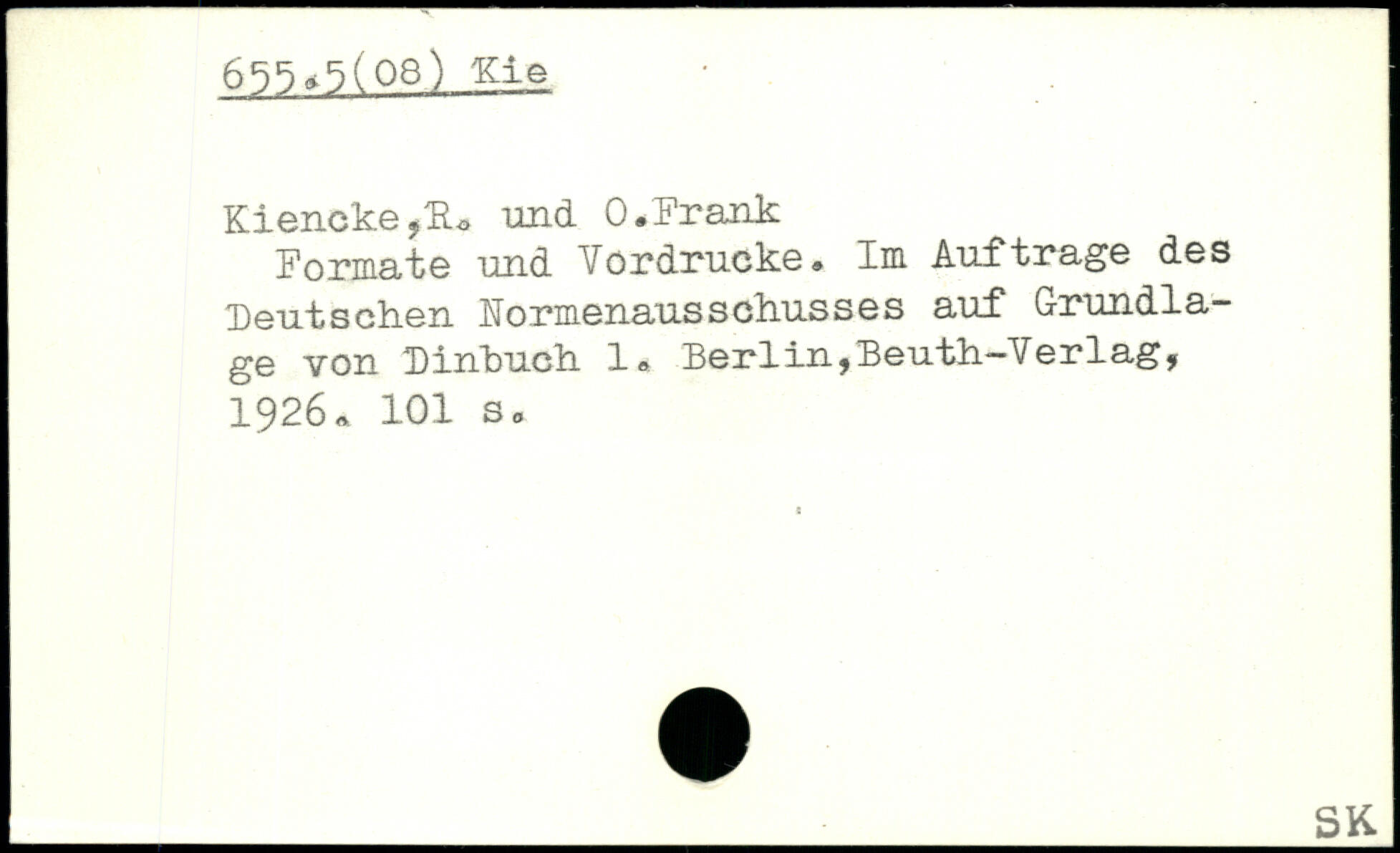 Kiencke,H. und 0.krank Formate und Vordrucke. Im Aufträge des Deutschen Normenausschusses auf Grundlage von Dinbuch 1, Berlin,Beuth—Verlag, 1926