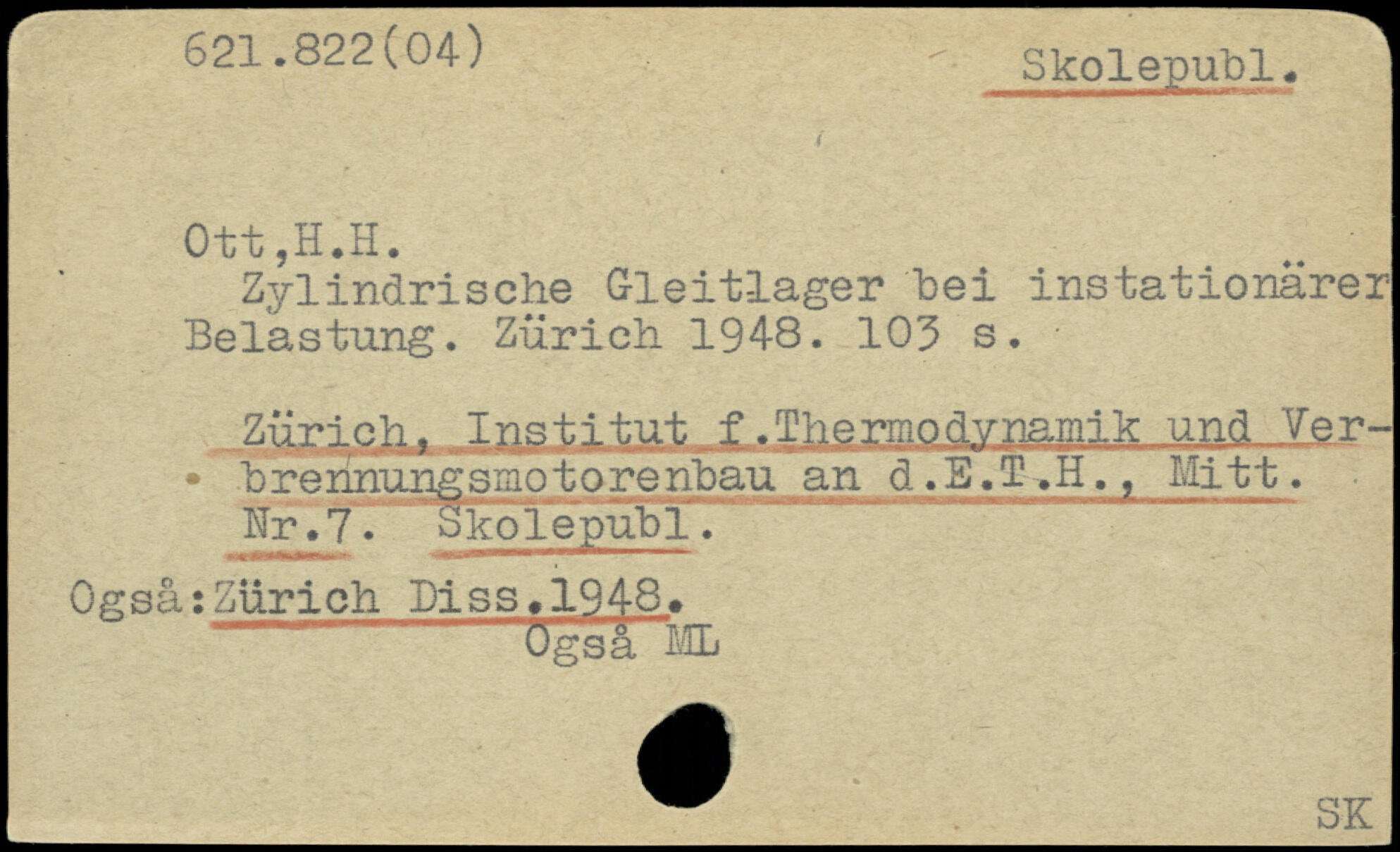 Zylindrische Gleitlager bei instationärer Belastung. Zürich 1948.