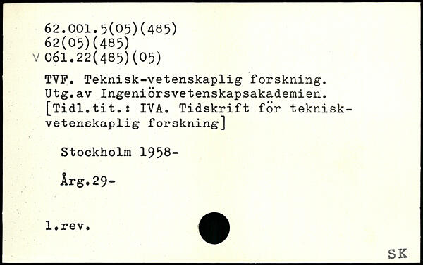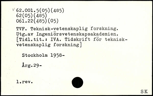 TVP. Teknisk-vetenskaplig forskning. Utg.av Ingeniörsvetenskapsakademien. [Tidl.tit.: IVA. Tidskrift för tekniskvetenskaplig forskning]