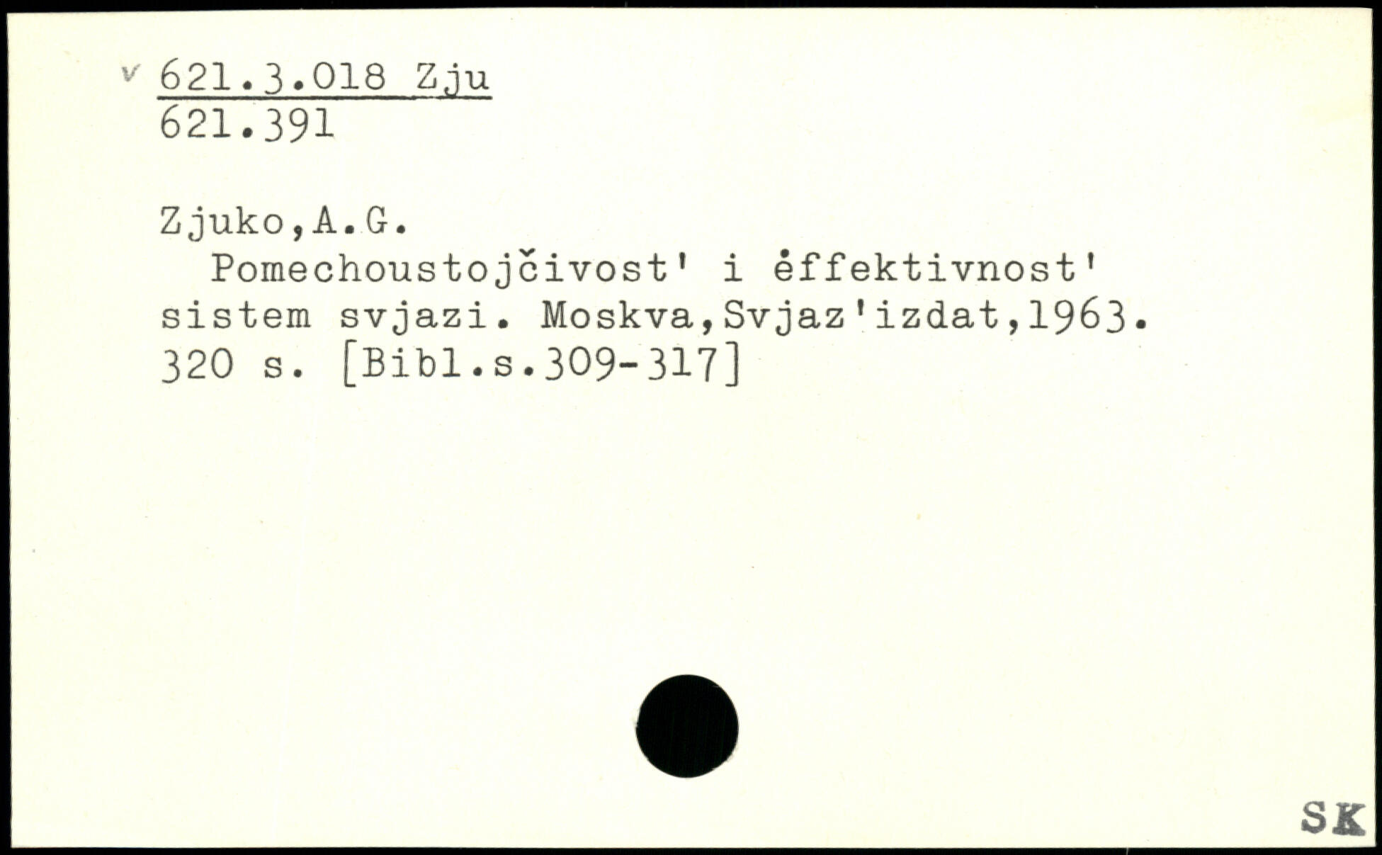 Pomechoustojcivost1 i éffektivnost' sistem svjazi. Moskva,Svjaz'izdat,1963.
