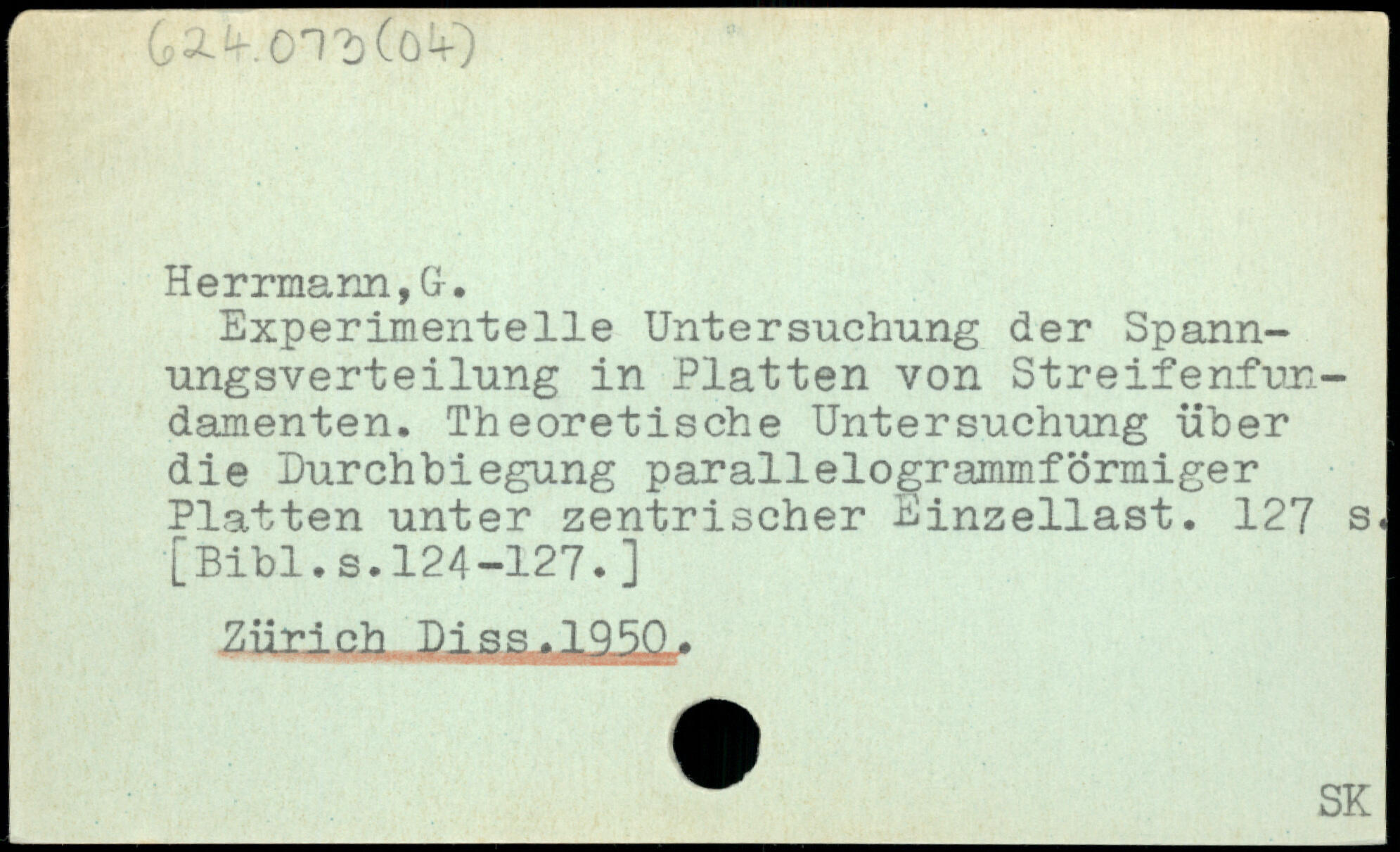 Experimentelle Untersuchung der Spannungsverteilung in Platten von Streifenfundamenten. Theoretische Untersuchung über die Durchbiegung parallelogrammförmiger Platten unter zentrischer Einzellast.