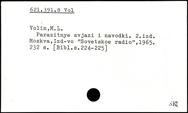 Parazitnye svjazi i navodki. 2.izd. Moskva,Izd-vo "Sovetskoe radio",1965.