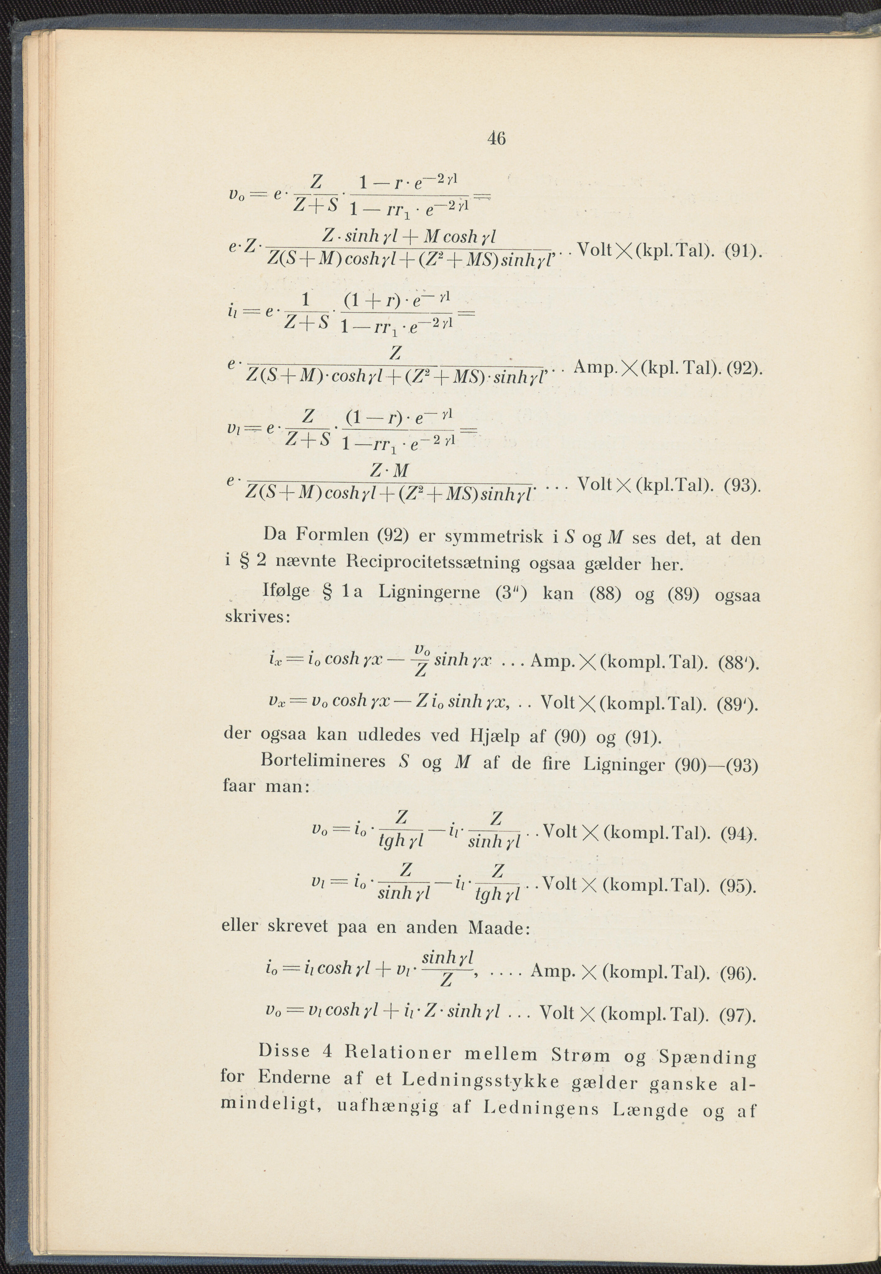 i0 = ii cosh ylvi • .... Amp. X (kompl. Tal). (96).