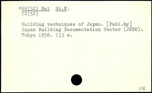 Building techniques of Japan. [Publ^by] Japan Building Documentation Center (JBDC)