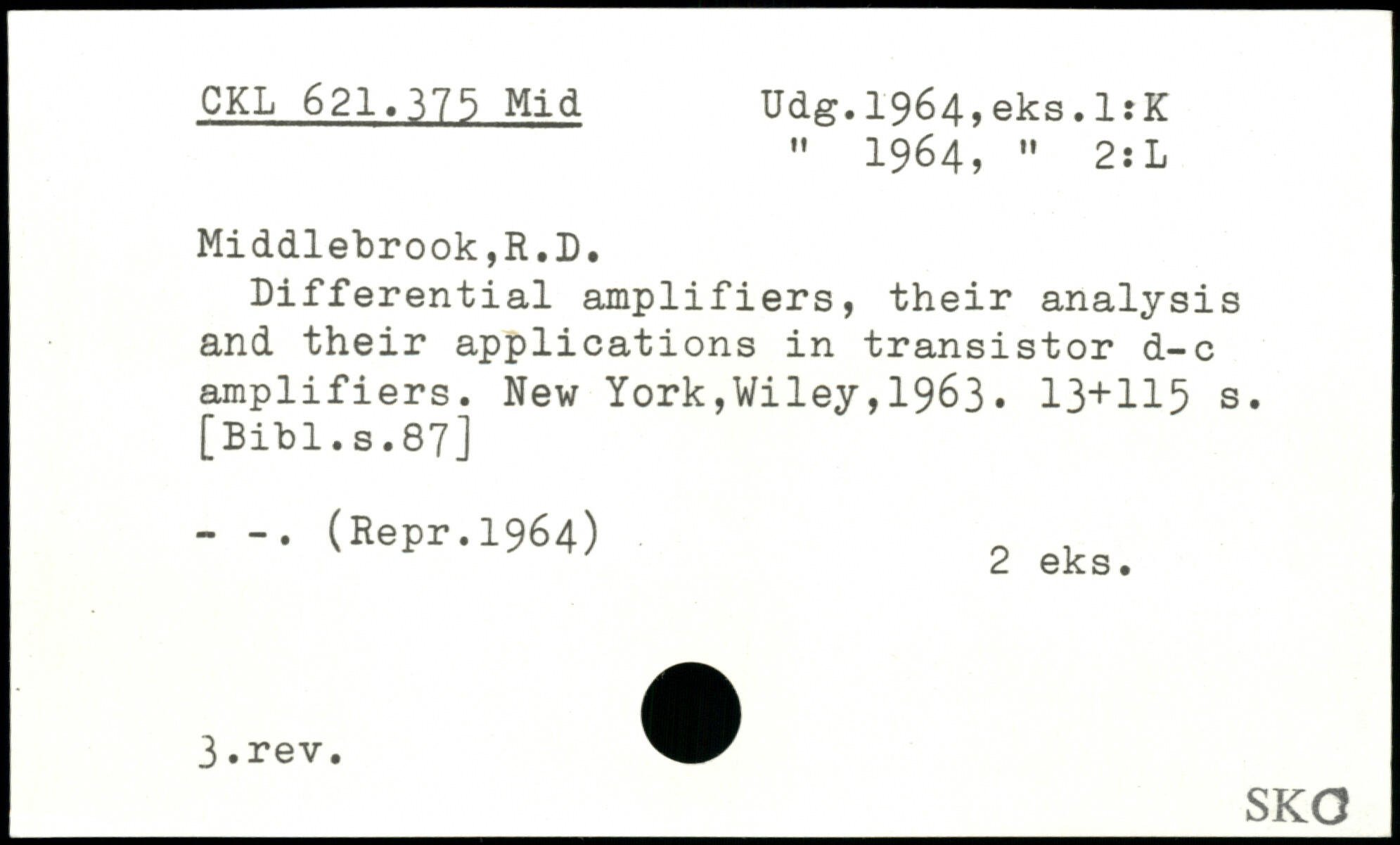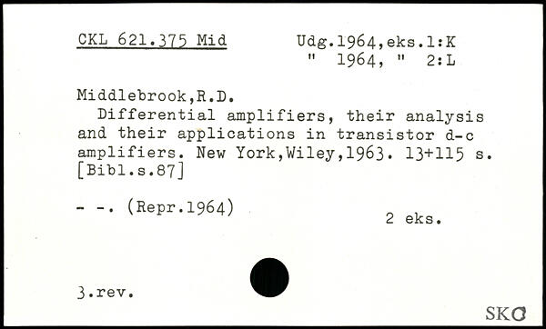 " 1964, " 2:L Middlebrook,R.D. Differential amplifiers, their analysis and their applications in transistor d-c amplifiers.