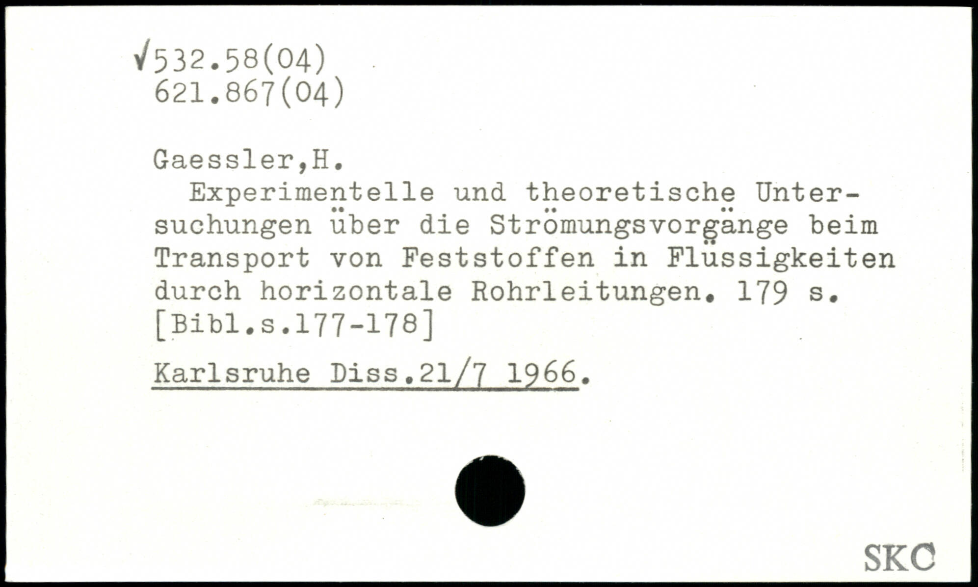 Experimentelle und theoretische Untersuchungen über die Strömungsvorgange beim Transport von Feststoffen in Flüssigkeiten durch horizontale Rohrleitungen.
