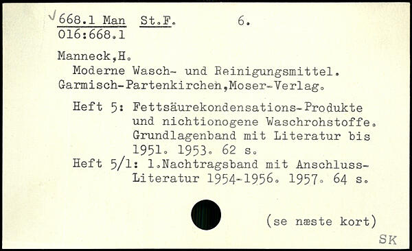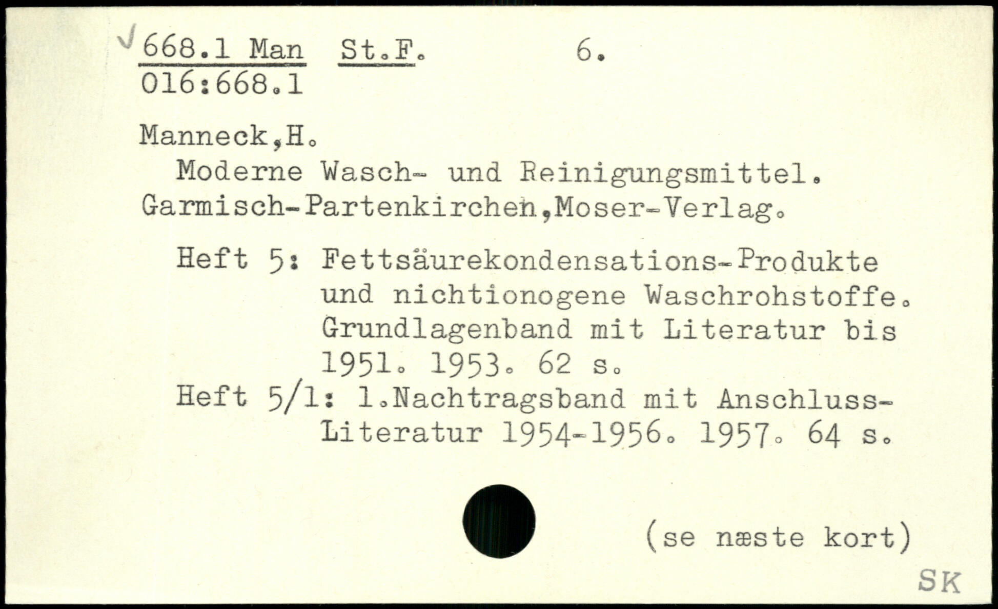 Moderne Wasch- und Beinigungsmittel. Garmisch-Partenkircheh,Moser-Verlag, Heft 5: Fettsäurekondensations-Produkte und nichtionogene Waschrohstoffe. Grundlagenband mit Literatur bis 1951. 1953=