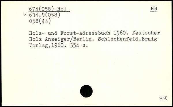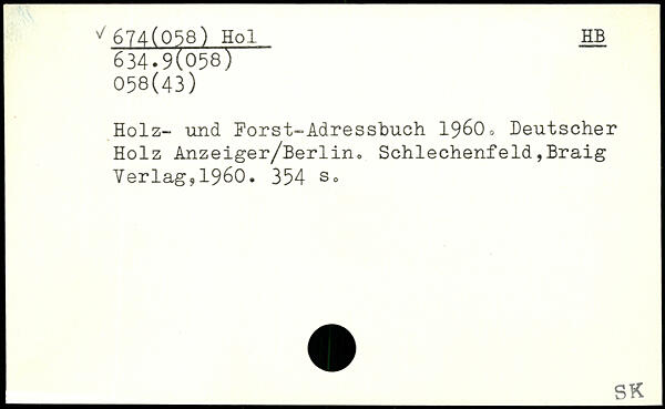 Holz- und Forst-Adressbuch 19600 Deutscher Holz Anzeiger/Berlin. Schlechenfeld,Braig Yerlag;,1960.