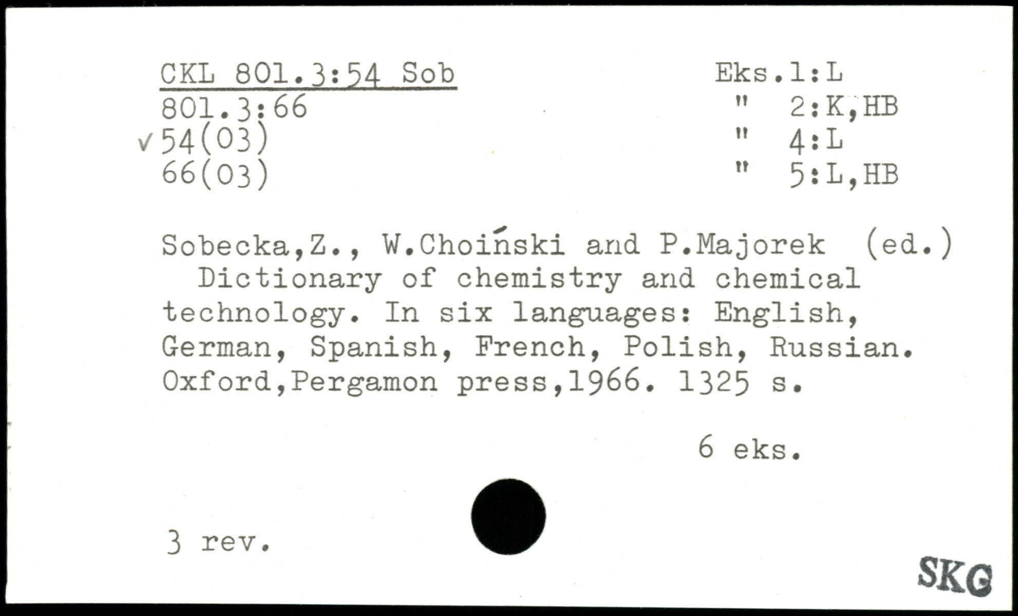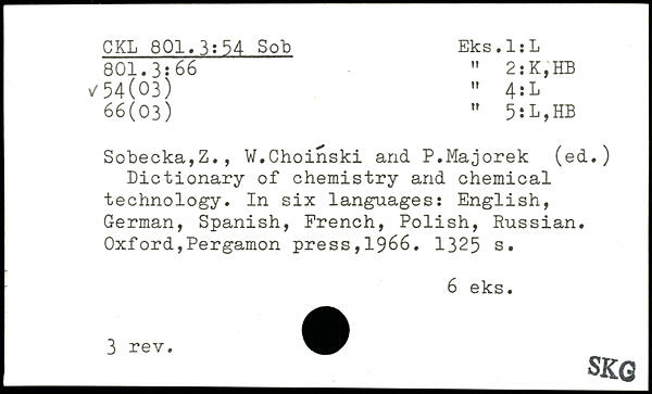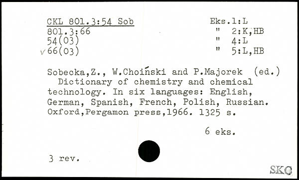 Dictionary of chemistry and chemical technology. In six languages: English, German, Spanish, French, Polish, Russian.