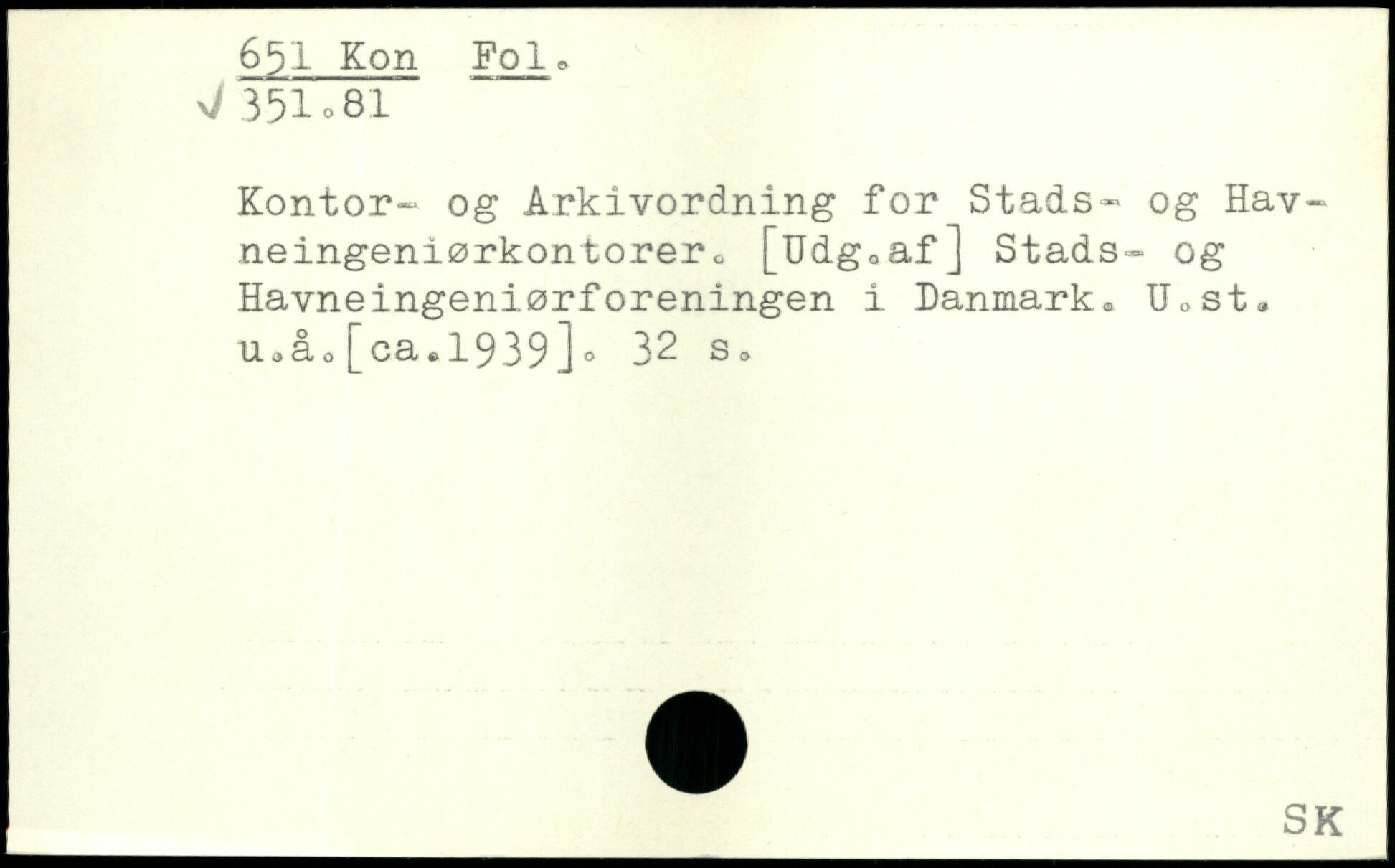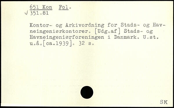 Kontor- og Arkivordning for Stads, og Hav-neingeniørkontorero [Udg0af] Stads- og Havneingeniørforeningen i Danmark. UoSt, u,åo[ca.1939]