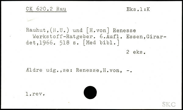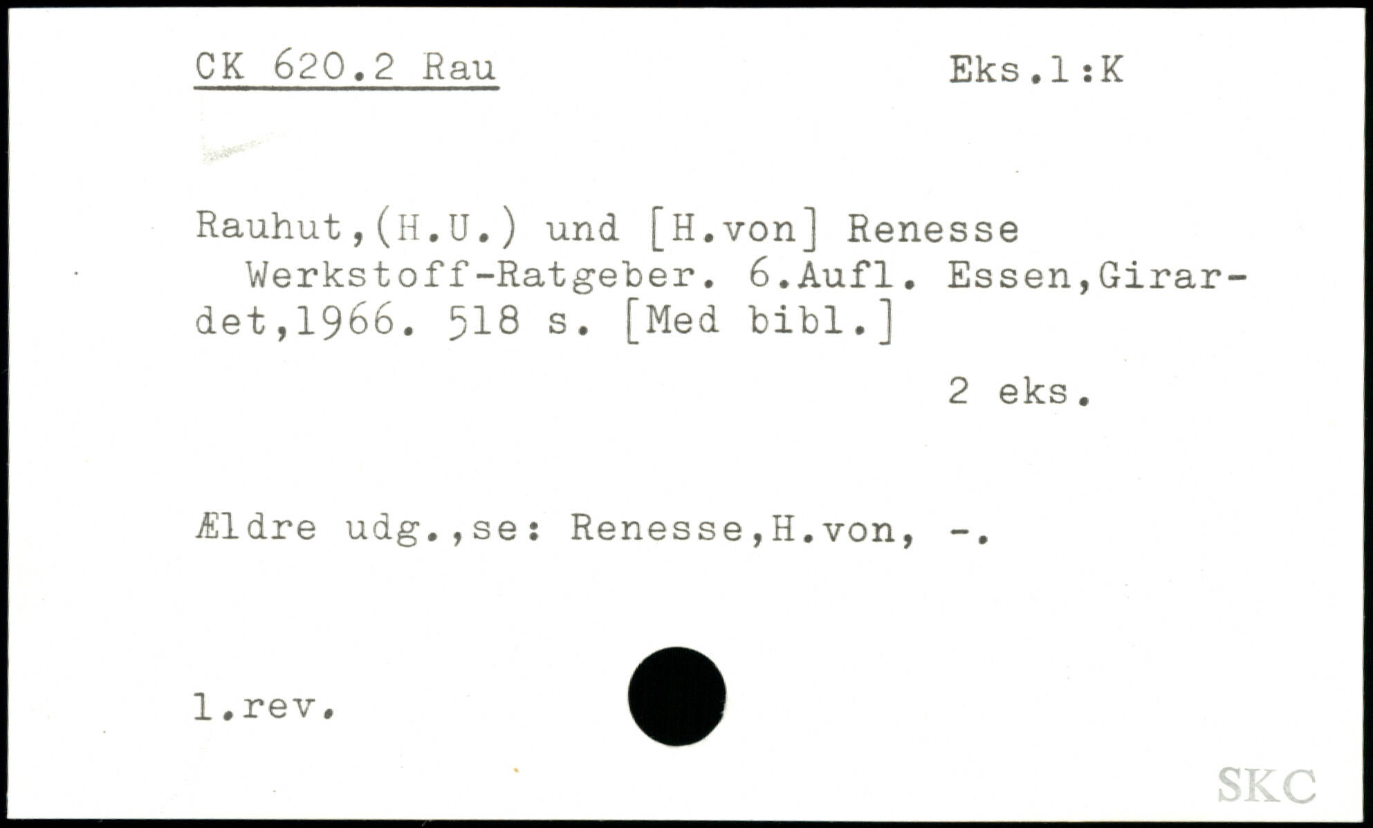Rauhut,(H.U.) und [H.von] Renesse Werkstoff-Ratgeber. é.Aufl.