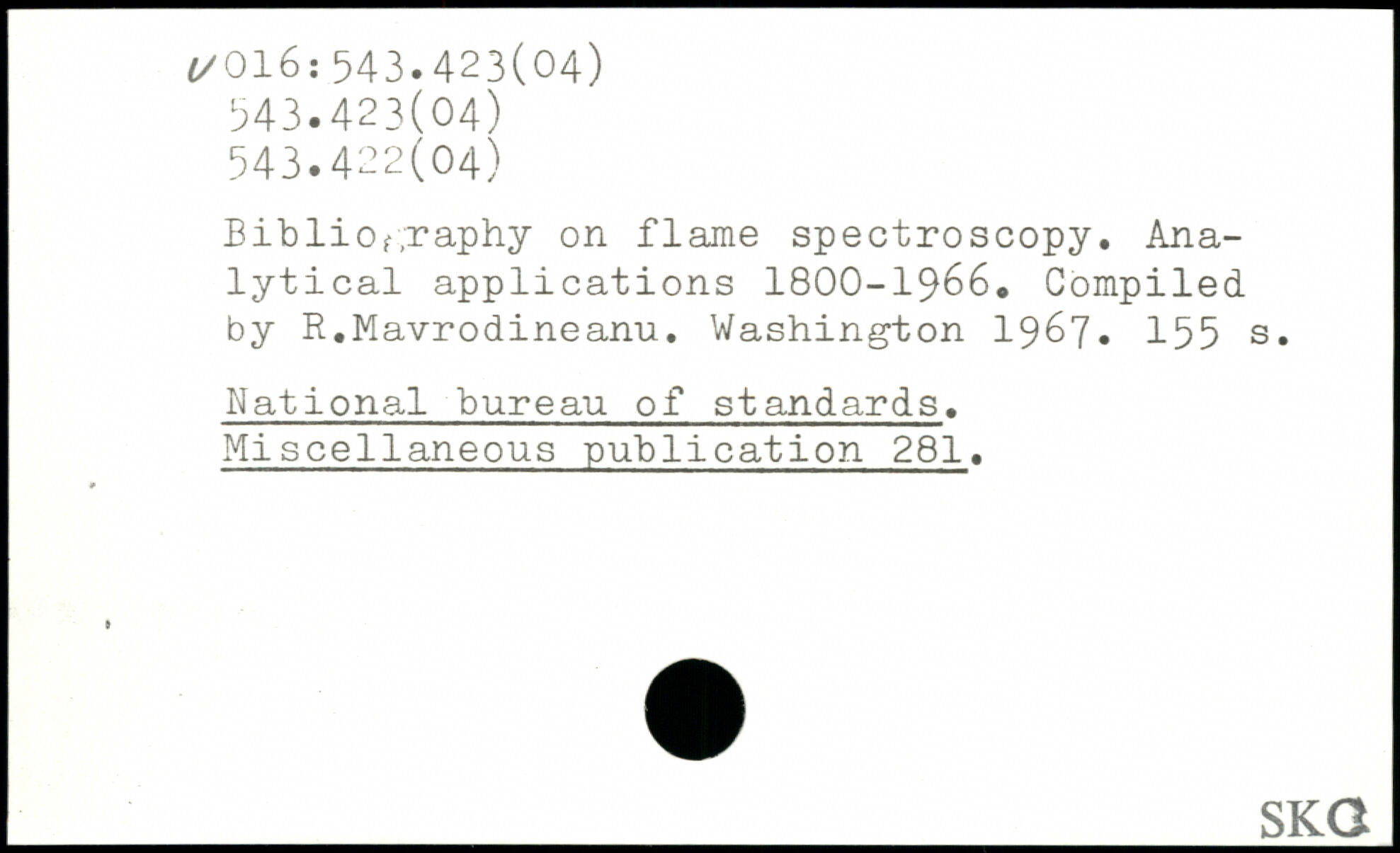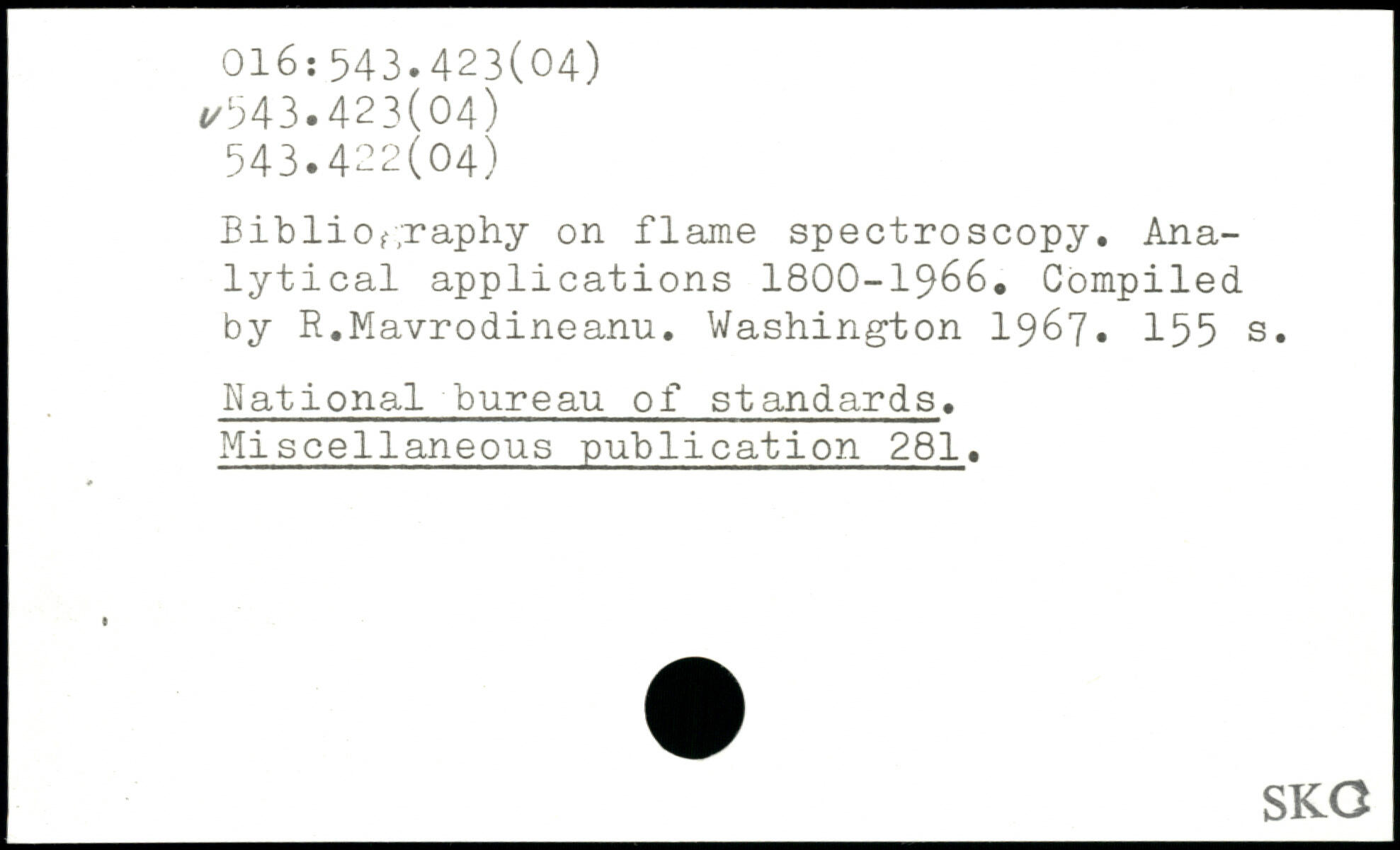 Bibliography on flame spectroscopy. Analytical applications 1800-1966. Compiled by R.Mavrodineanu.