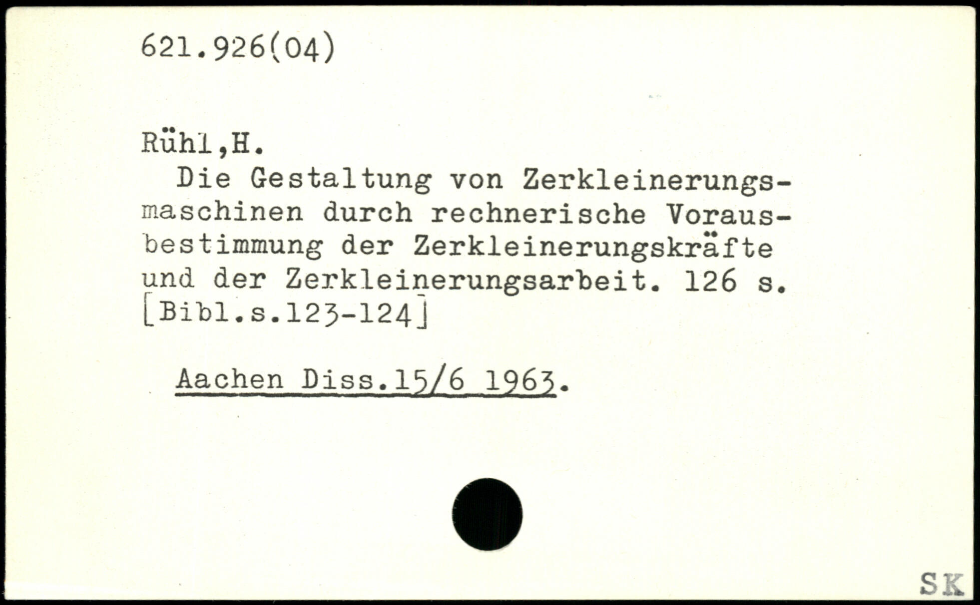 Die Gestaltung von Zerkleinerungsmaschinen durch rechnerische Voraus-bestimmung der Zerkleinerungskräfte und der Zerkleinerungsarbeit.
