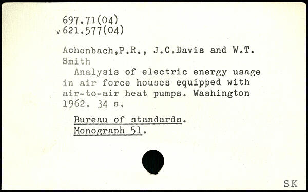 Achonbach,P.It., J.C.Davis and W.T. Smith Analysis of electric energy usage in air force houses equipped with air-to-air heat pumps.