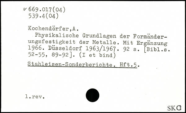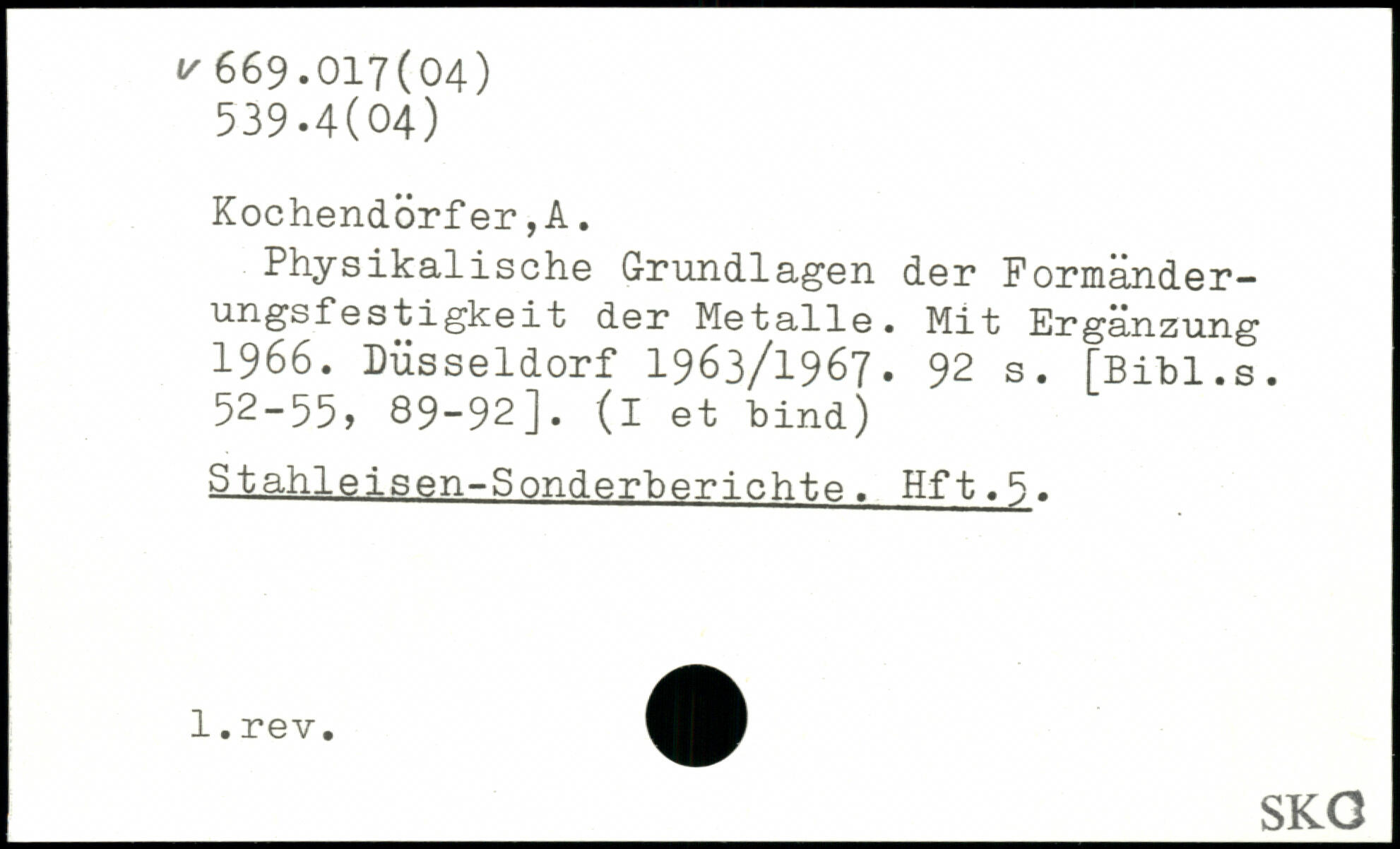Physikalische Grundlagen der Formänder-ungsf estigkeit der Metalle. Mit Ergänzung 1966. Düsseldorf 1963/1967.
