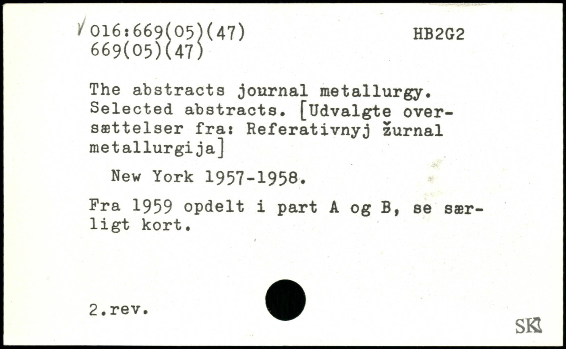 The abstracts journal metallurgy. Selected abstracts. [Udvalgte oversættelser fra: Referativnyj zurnal metallurgija]