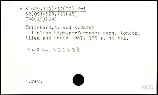 Italian high-performance cars. London, Allen and Unwin,19^7
