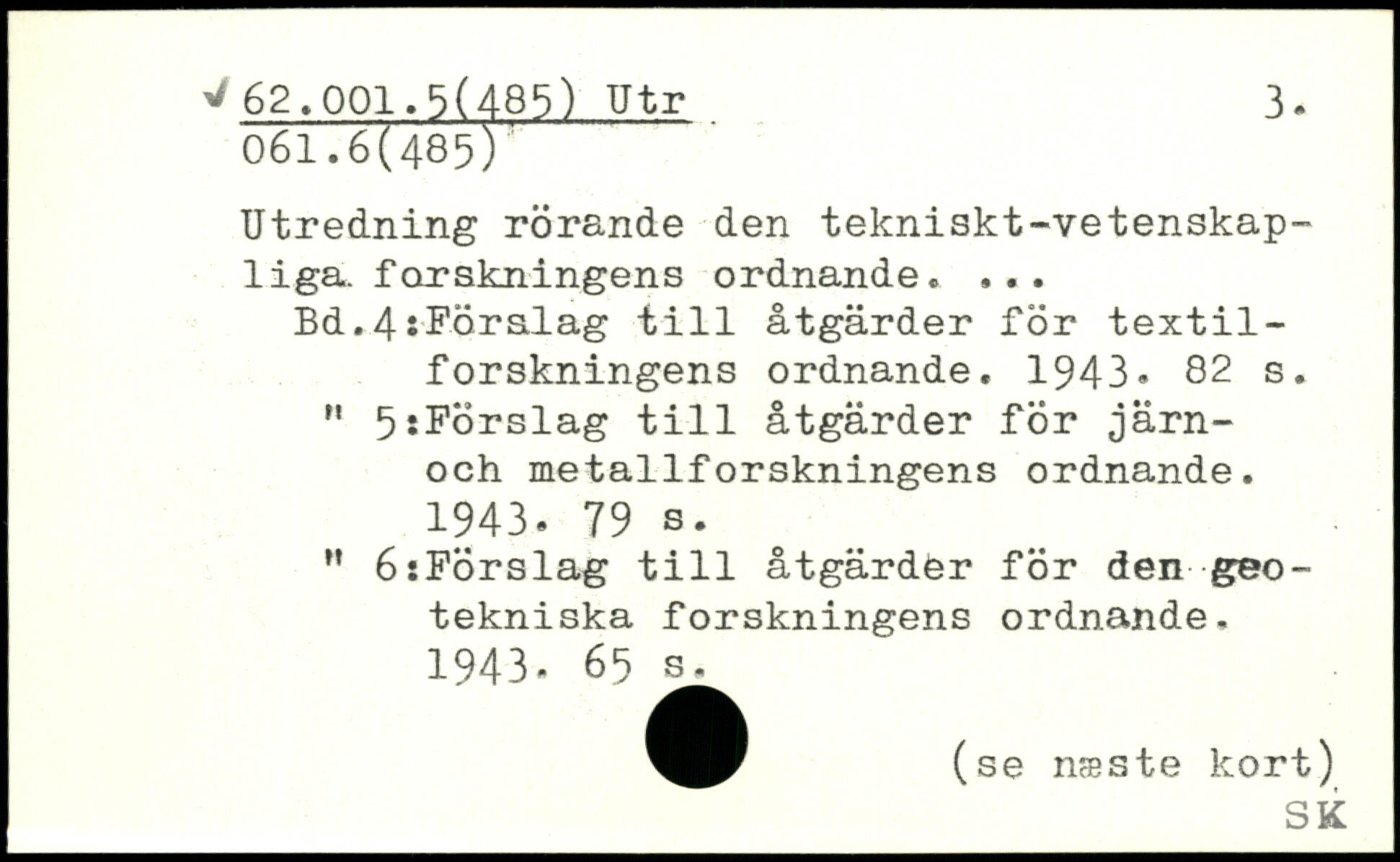 Utredning rörande den tekniskt-vetenskap-1iga. forskningens ordnande. ...