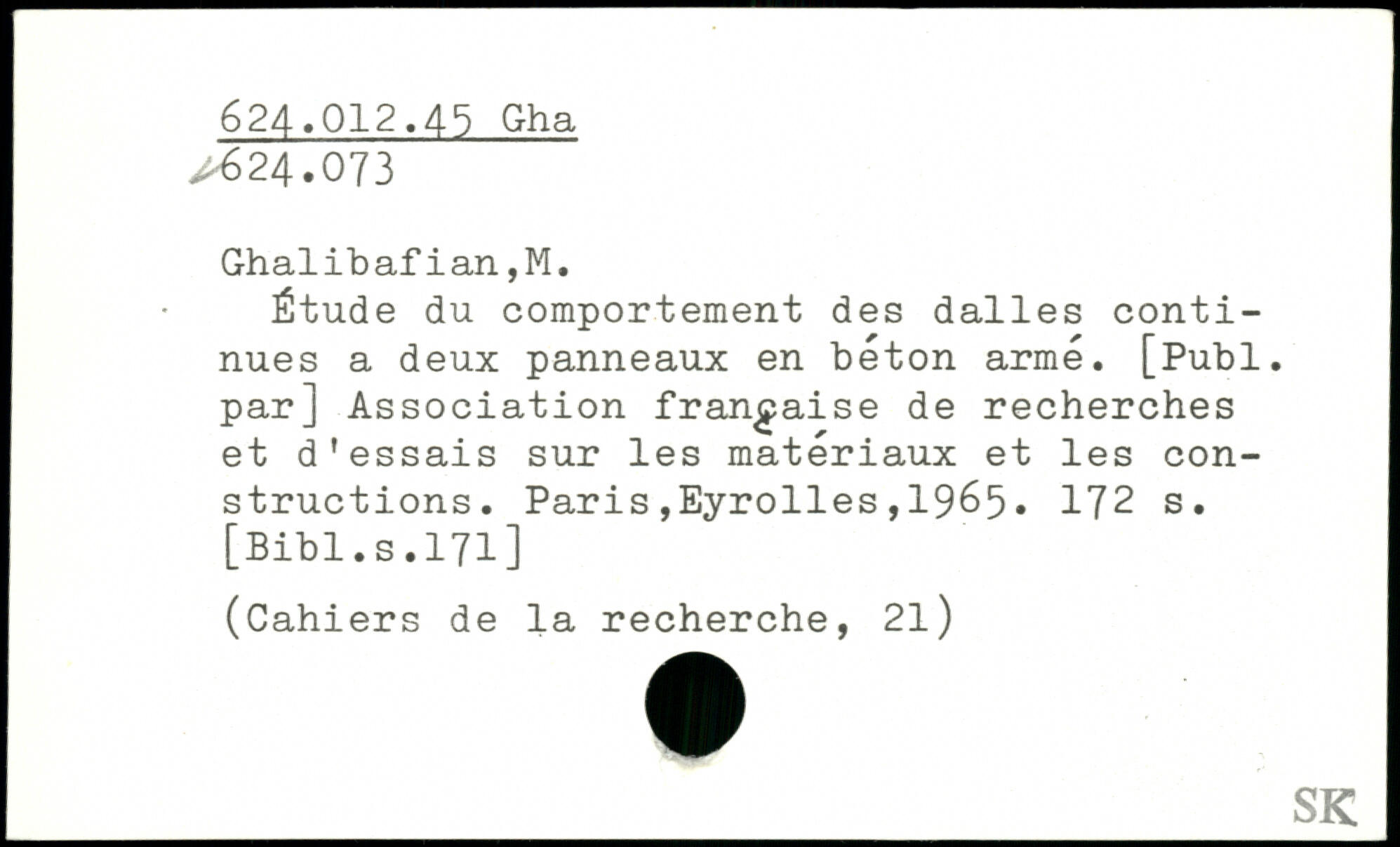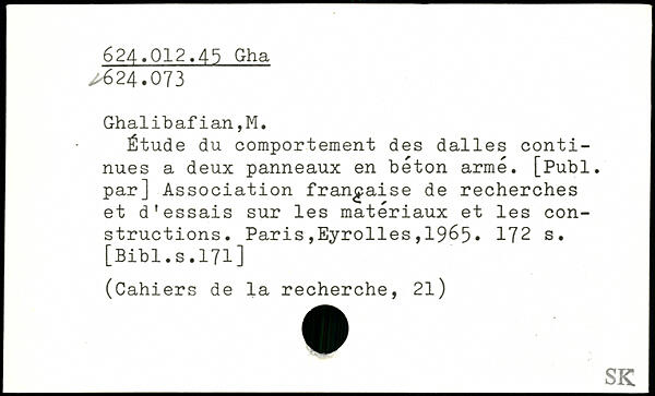 Ghalib af i an, M. Étude du comportement des dalles continues a deux panneaux en béton armé. [Publ. par] Association française de recherches et d'essais sur les matériaux et les constructions.