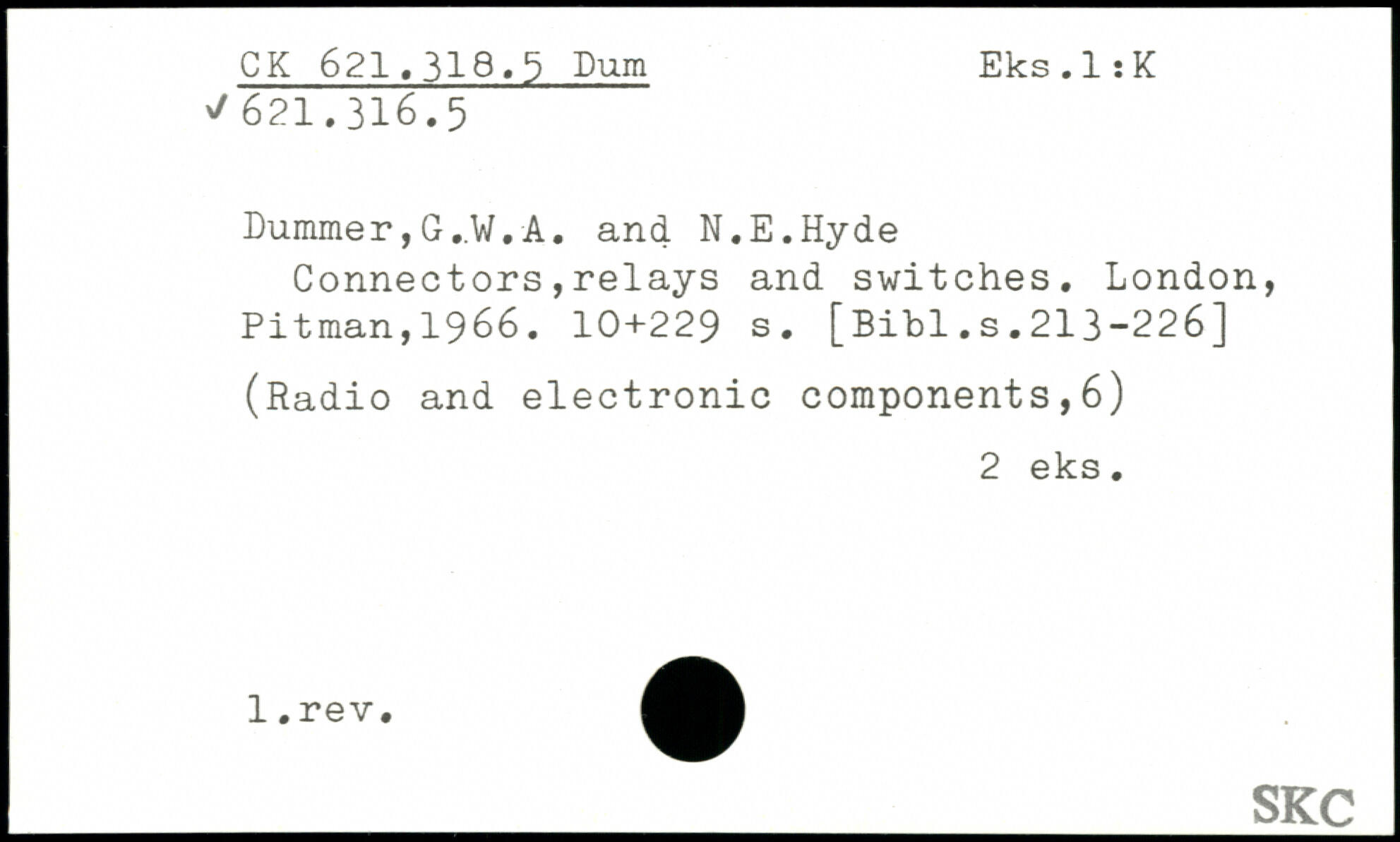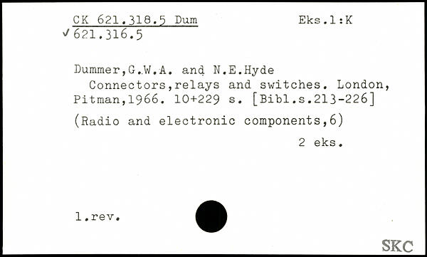 Dummer, G..W.A. and. N.E.Hyde Connectors,relays and switches.