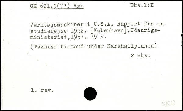 Værktøjsmaskiner i U.S.A. Rapport fra en studierejse 1952.