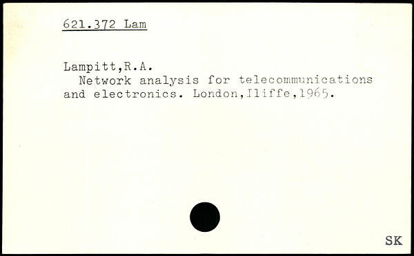 Network analysis for telecommunications and electronics. London,Iliffe,19^5.
