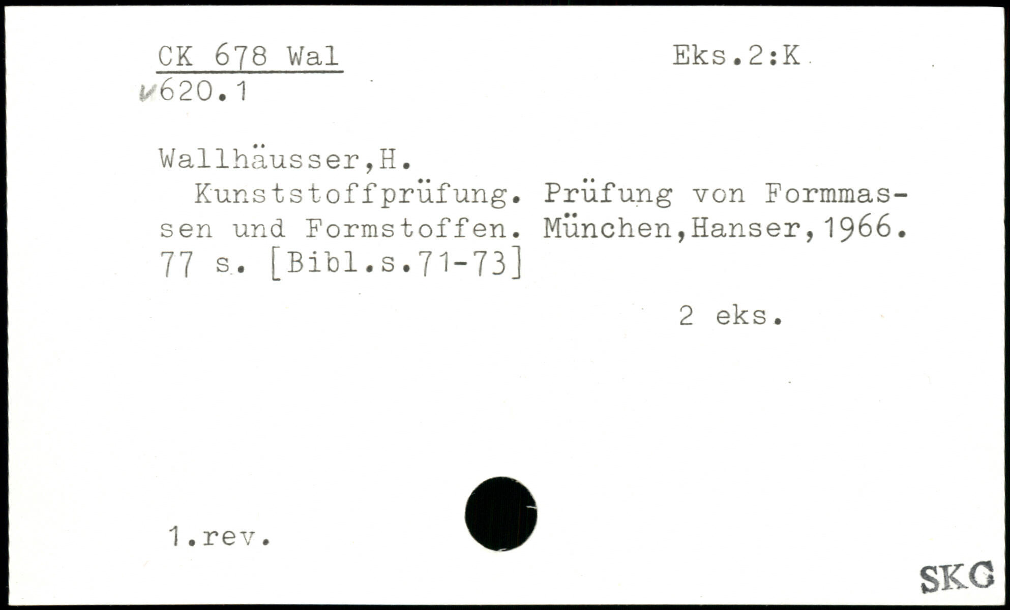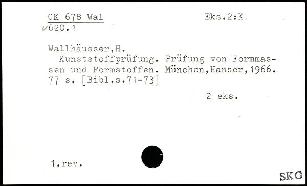 Kunststoffprüfung. Prüfung von Formmassen und Formstoffen. München,Hanser,19^6.
