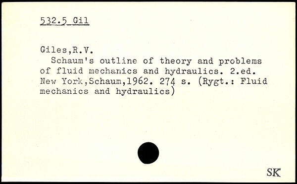 Schaum's outline of theory and problems of fluid mechanics and hydraulics.