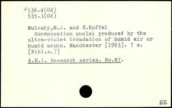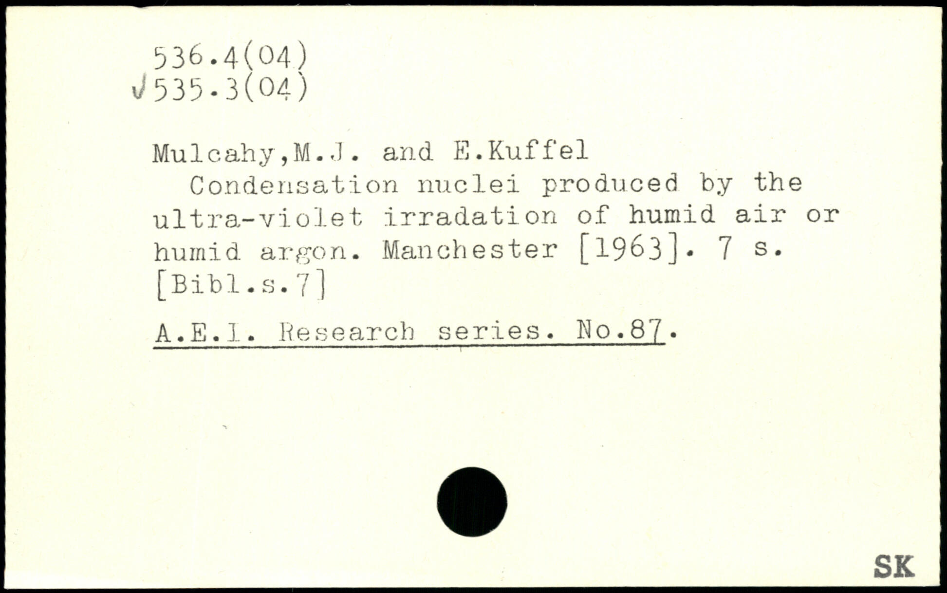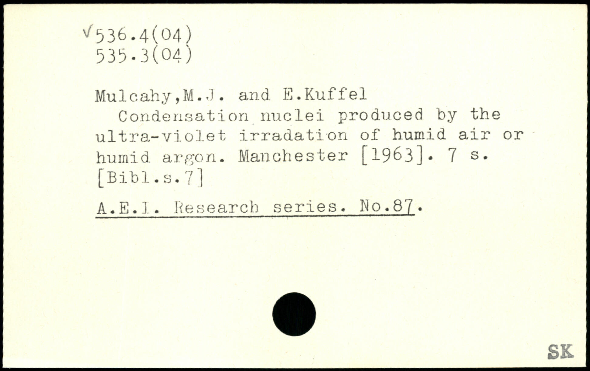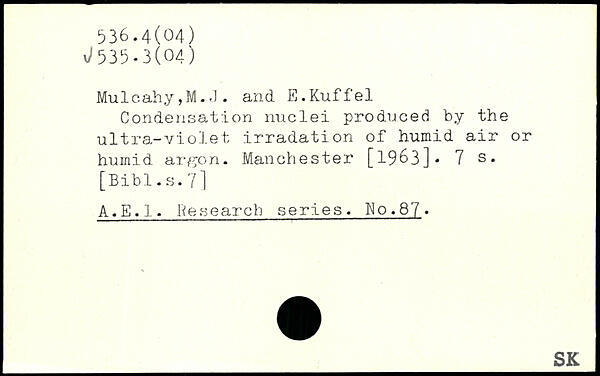 Condensation nuclei produced by the ultra-violet irradation of humid air or humid argon.