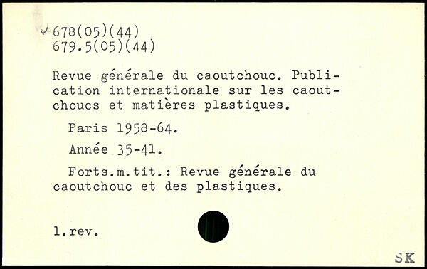 Revue générale du caoutchouc. Publication internationale sur les caoutchoucs et matières plastiques.