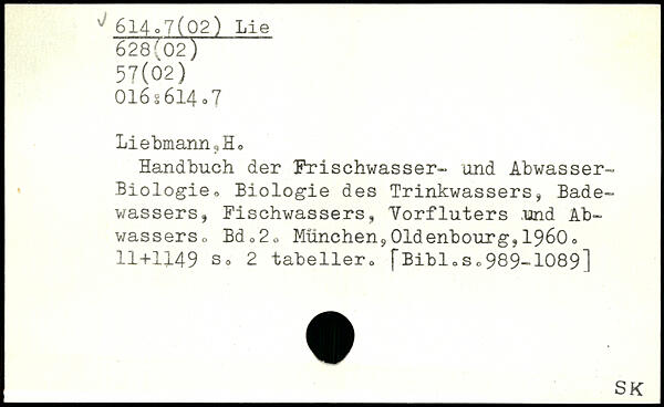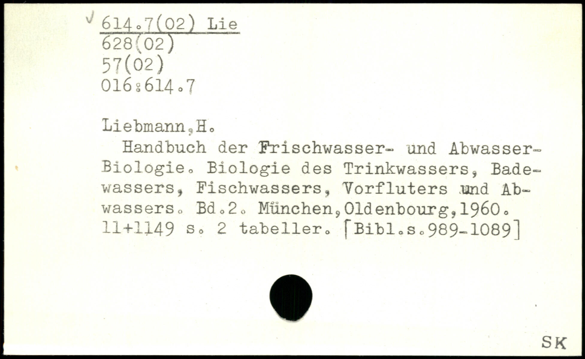 Liebmann?Ho Handbuch der Frischwasser- und Abwasser-Biologie o Biologie des Trinkwassers, Badewassers, Fischwassers, Vorfluters .und Abwassers, Bdo2o