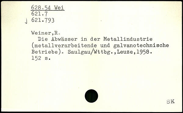 Die Abwasser in der Metallindustrie (metallverarbeitende und galvanotechnische Betriebe), Saulgau/Wttbg.,Leuze,195ö.