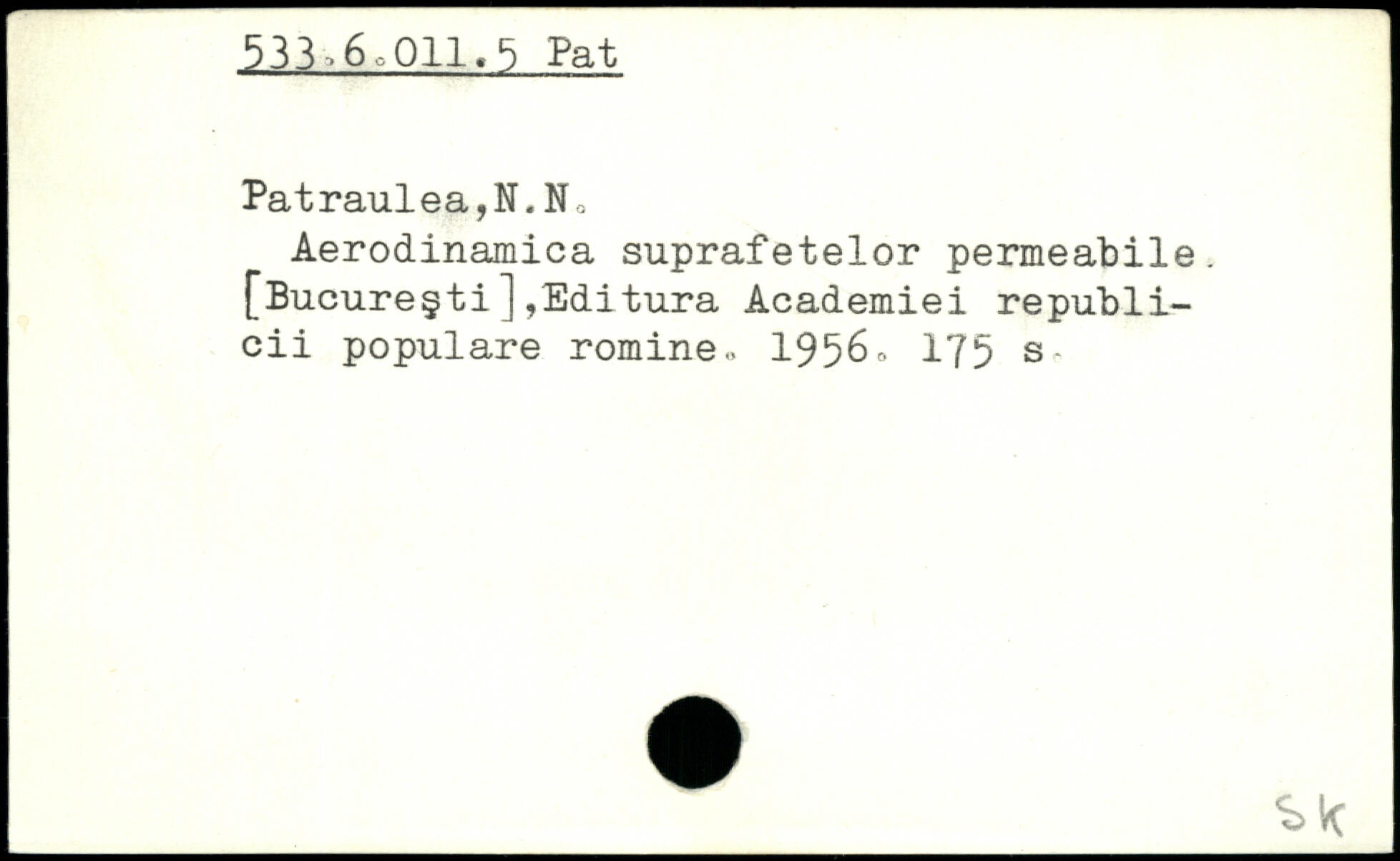 Aerodinamica suprafetelor permeabile. [Bucure§ti],Editura Academiei republi-cii populäre romine.. 1956. 1?