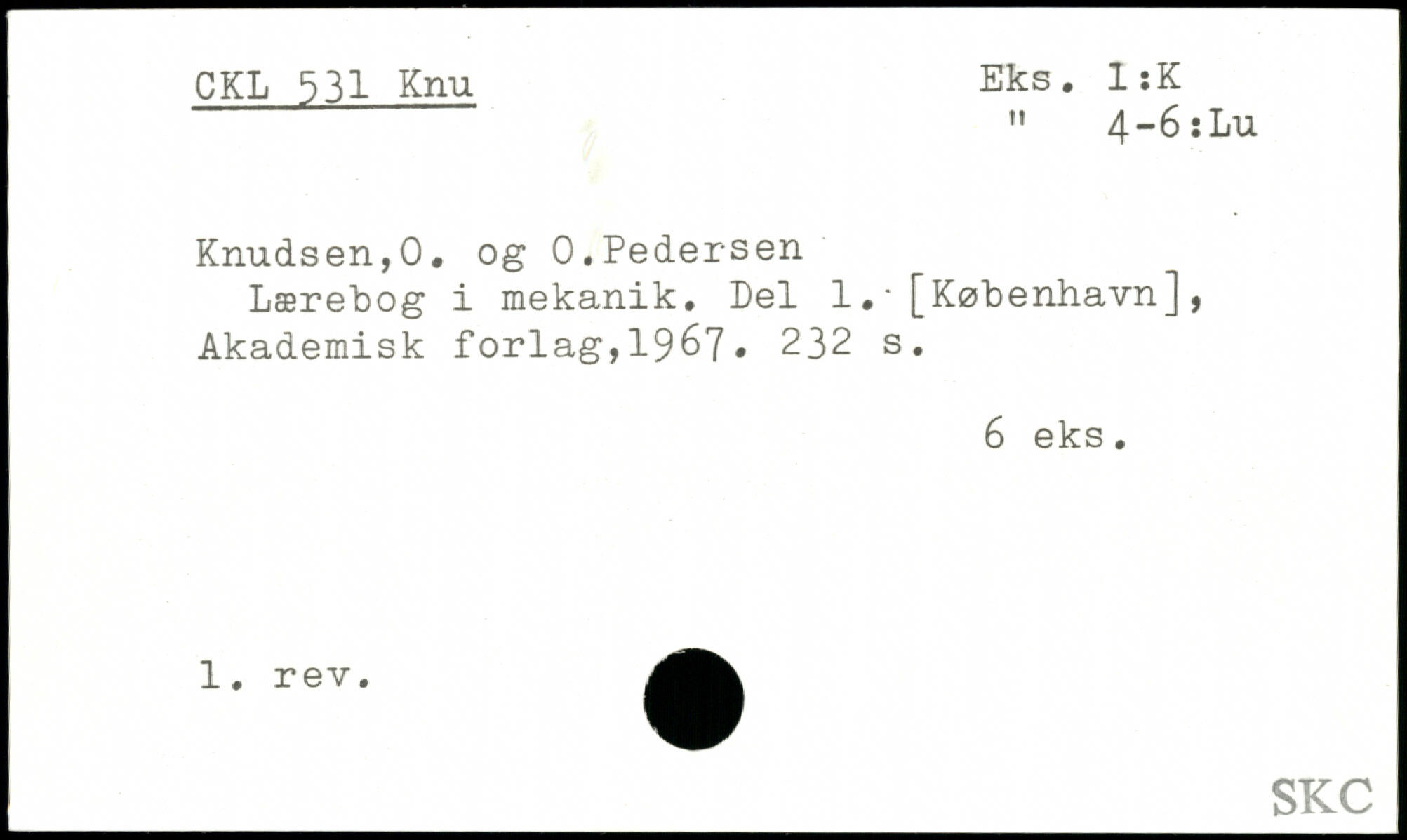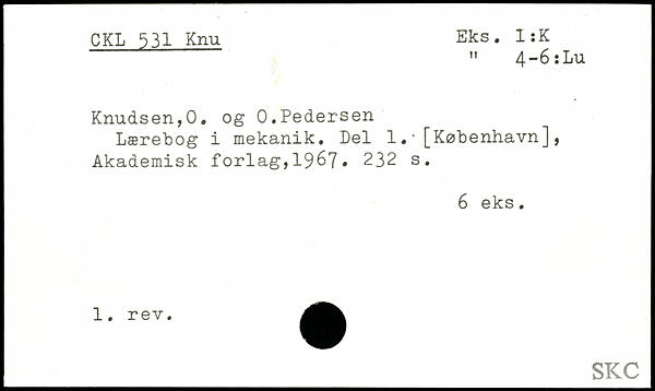 Knudsen,0. og 0.Pedersen Lærebog i mekanik. Del 1..[København], Akademisk forlag,1967