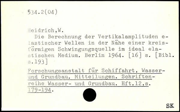 Die Berechnung der Vertikalamplituden e-iastischer Wellen in der Nahe einer kreisförmigen Schwingungsquelle im ideal elastischen Medium. Berlin 19&4. [16 ] s.