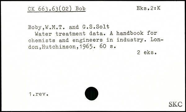 Water treatment data. A handbook for chemists and engineers in industry. London ,Hutchinson,19&5.