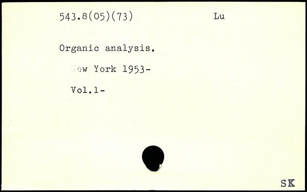 Organic analysis, lew York 1953-Vol.l-