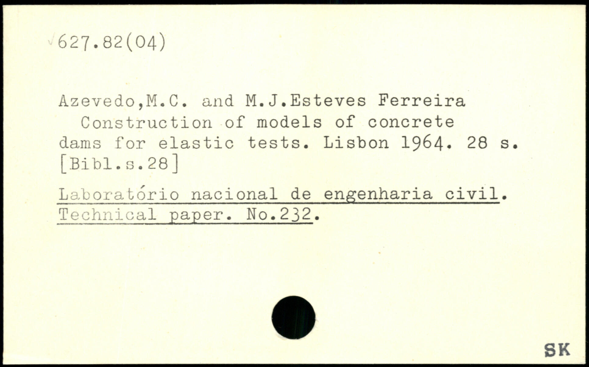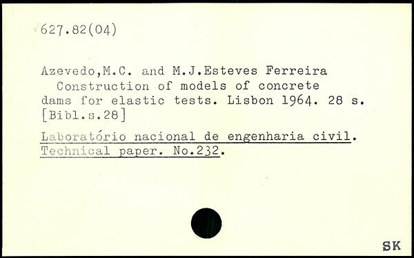 Azevedo,M.C. and M.J.Esteves Ferreira Construction of models of concrete dams for elastic tests. Lisbon 1964.